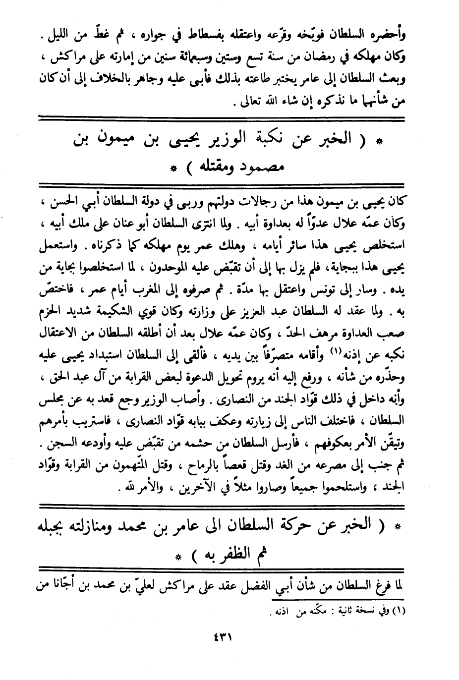 (الخبر عن نكبة الوزير يحيى بن ميمون بن مصمود ومقتله)