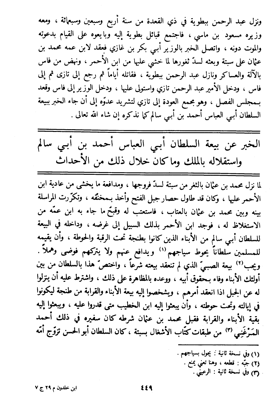 الخبر عن بيعة السلطان أبي العباس أحمد بن أبي سالم واستقلاله بالملك وما كان خلال ذلك من الأحداث