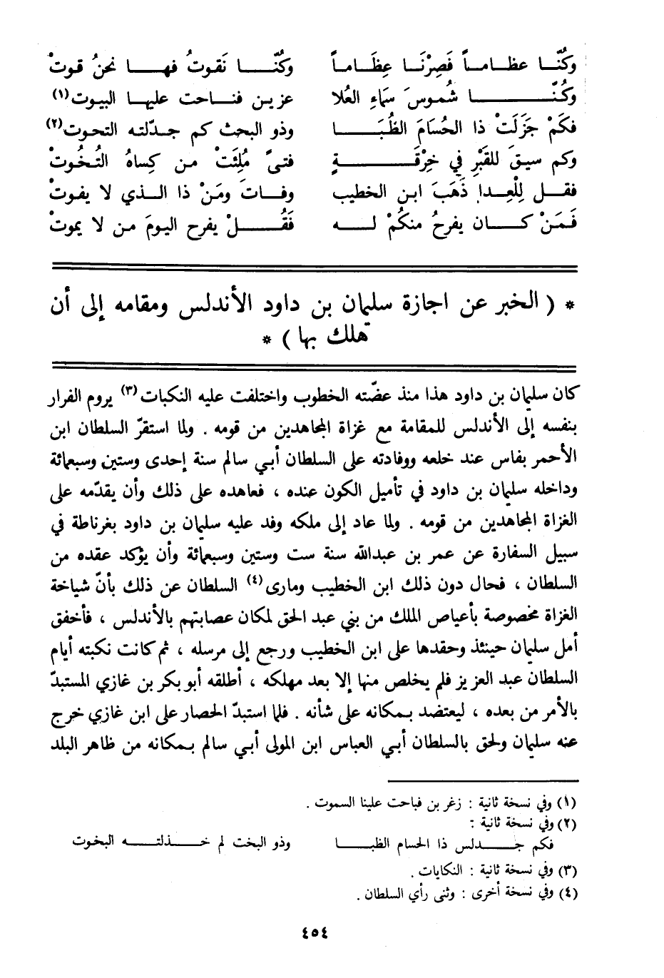 (الخبر عن اجازة سليمان بن داود الأندلس ومقامه إلى أن هلك بها)