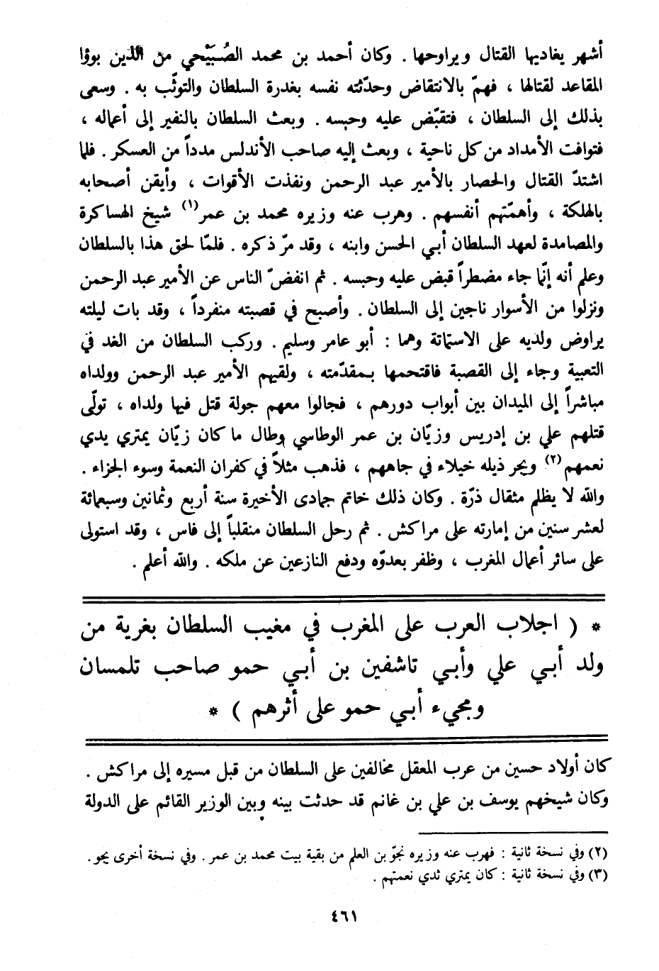 (اجلاب العرب على المغرب في مغيب السلطان بغرية من ولد أبي علي وأبي تاشفين بن أبي حمو صاحب تلمسان ومجيء أبي حمو على أثرهم)