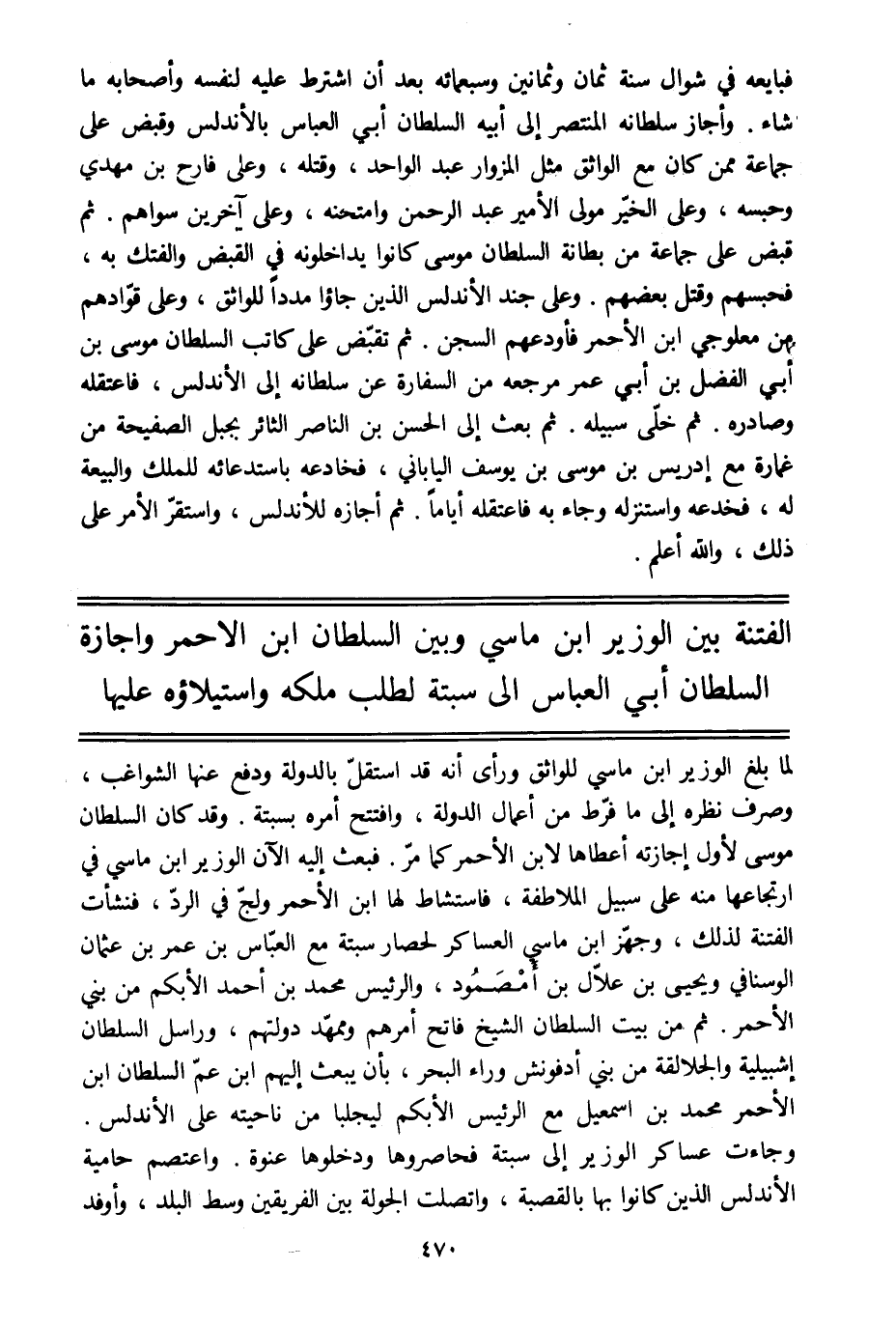 الفتنة بين الوزير ابن ماسي وبين السلطان ابن الأحمر واجازة السلطان أبي العباس الى سبتة لطلب ملكه واستيلاؤه عليها