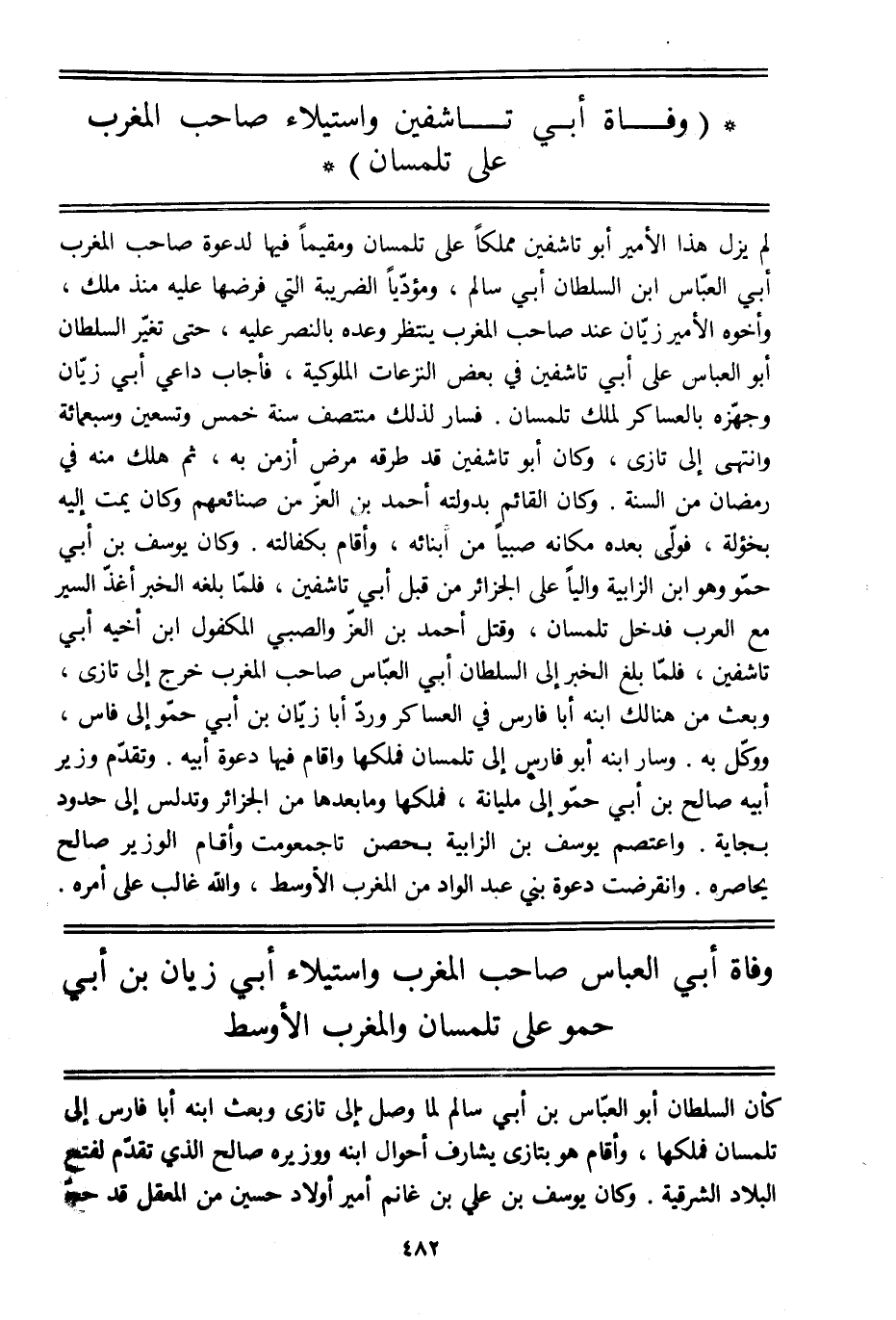 (وفاة أبي تاشفين واستيلاء صاحب المغرب على تلمسان)