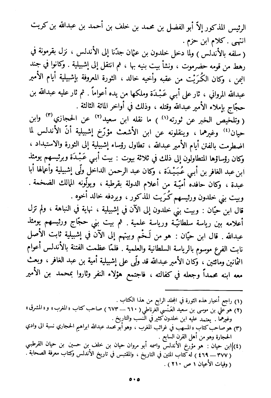 [4] ابن حيان: هو مؤرخ الأندلس واسمه أبو مروان حيان بن خلف بن حسين بن حيان القرطبي (377- 469) له كتاب المتين في التاريخ، والمقتبس في تاريخ الأندلس وكتاب معرفة الصحابة.
