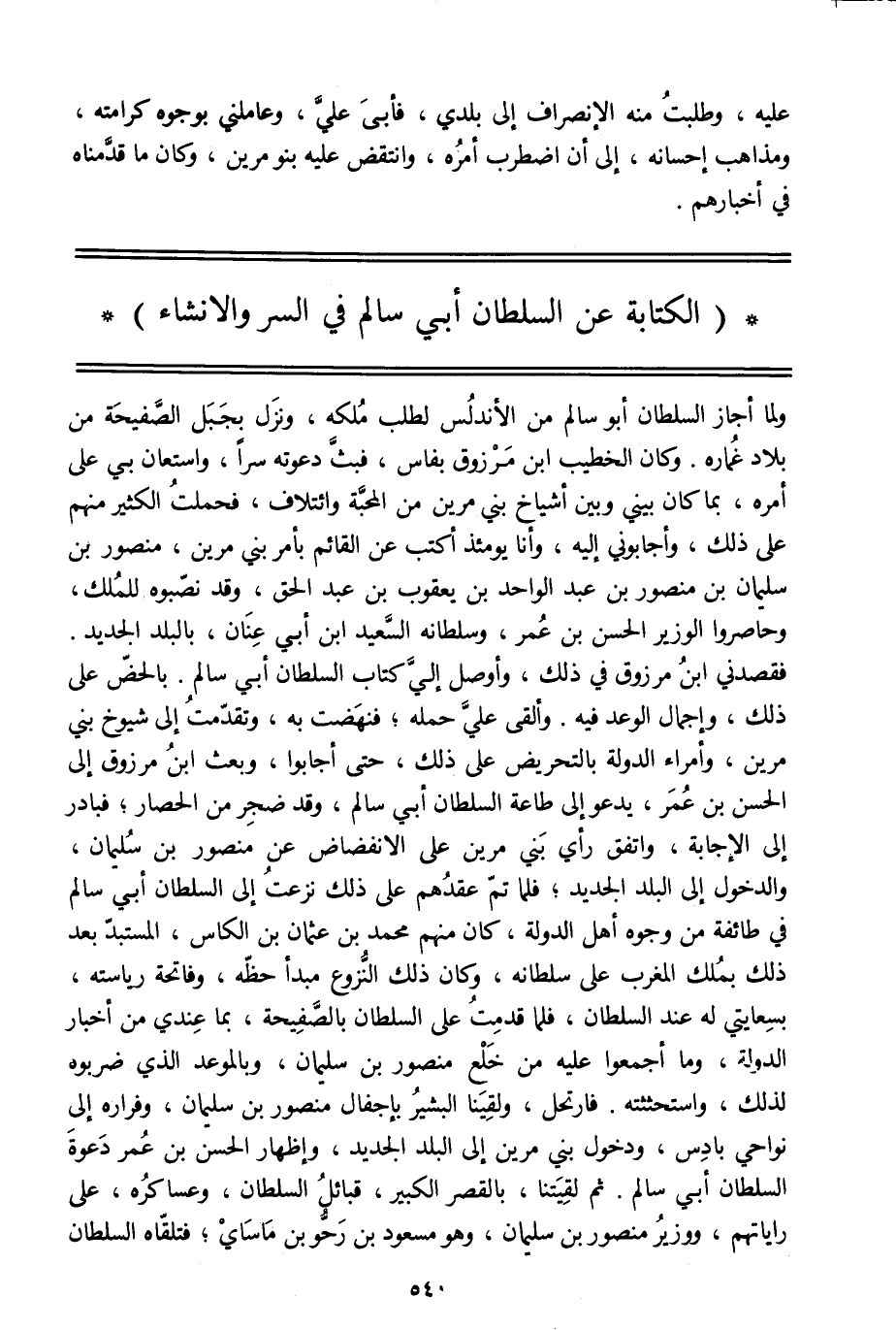 (الكتابة عن السلطان أبي سالم في السر والإنشاء)