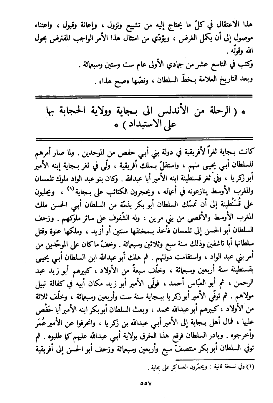 (الرحلة من الأندلس الى بجاية وولاية الحجابة بها على الاستبداد)