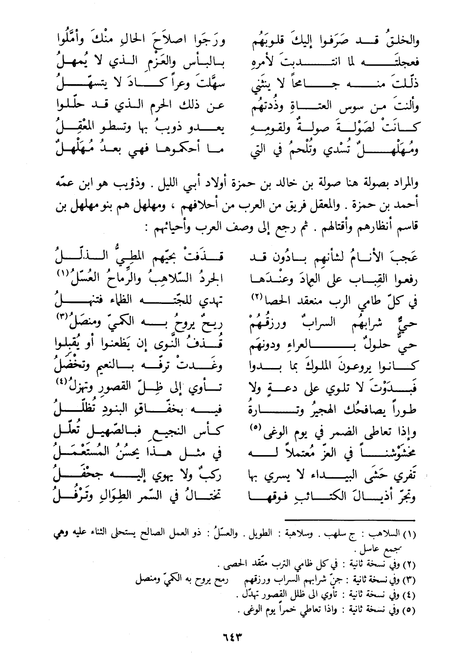 [1] السلاهب: ج سلهب. وسلاهبة: الطويل. والعسل: ذو العمل الصالح يستحلى الثناء عليه وهي جمع عاسل.