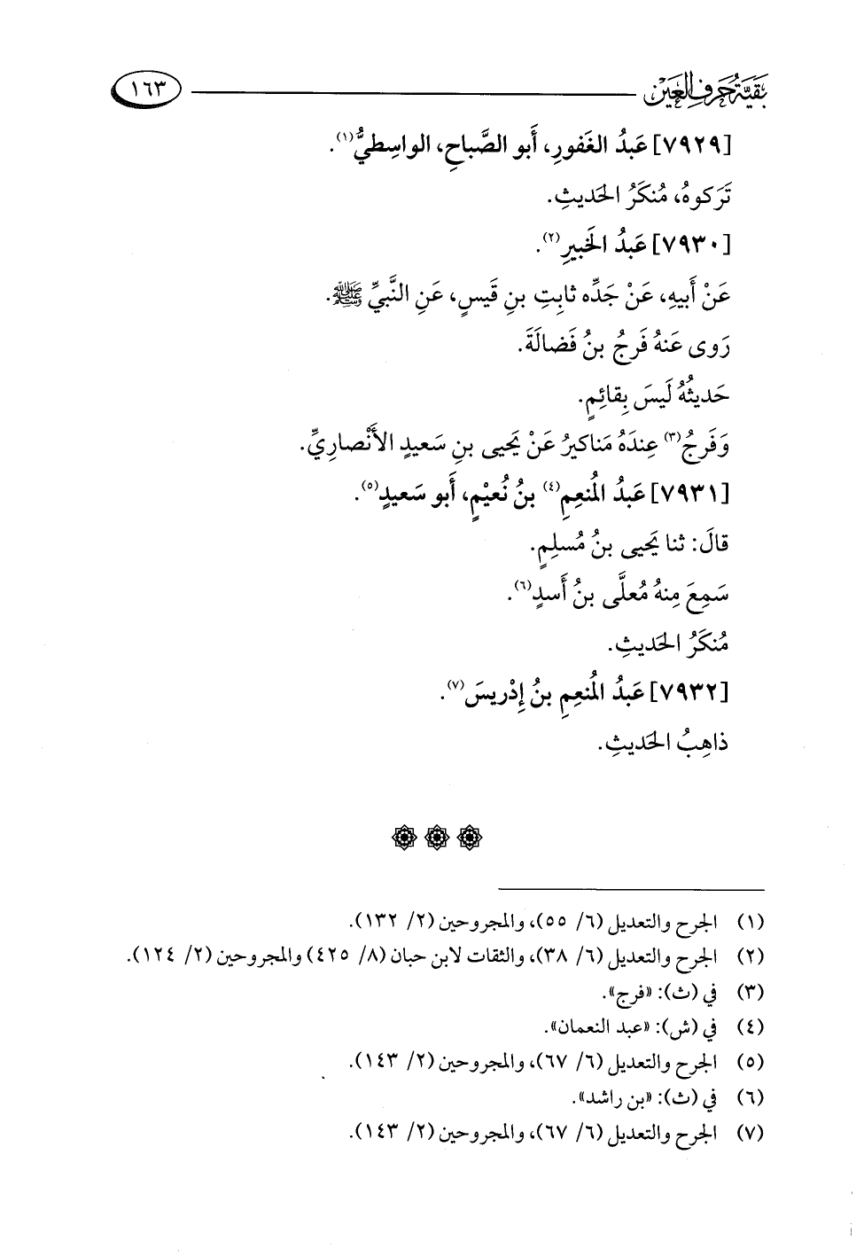 (¬٥) الجرح والتعديل (٦/ ٧٦)، والمجروحين (٢/ ١٤٣).