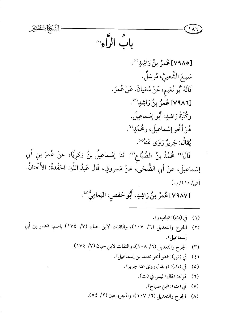 كتاب التاريخ الكبير للبخاري - ت الدباسي والنحال (اسم الجزء: 7)