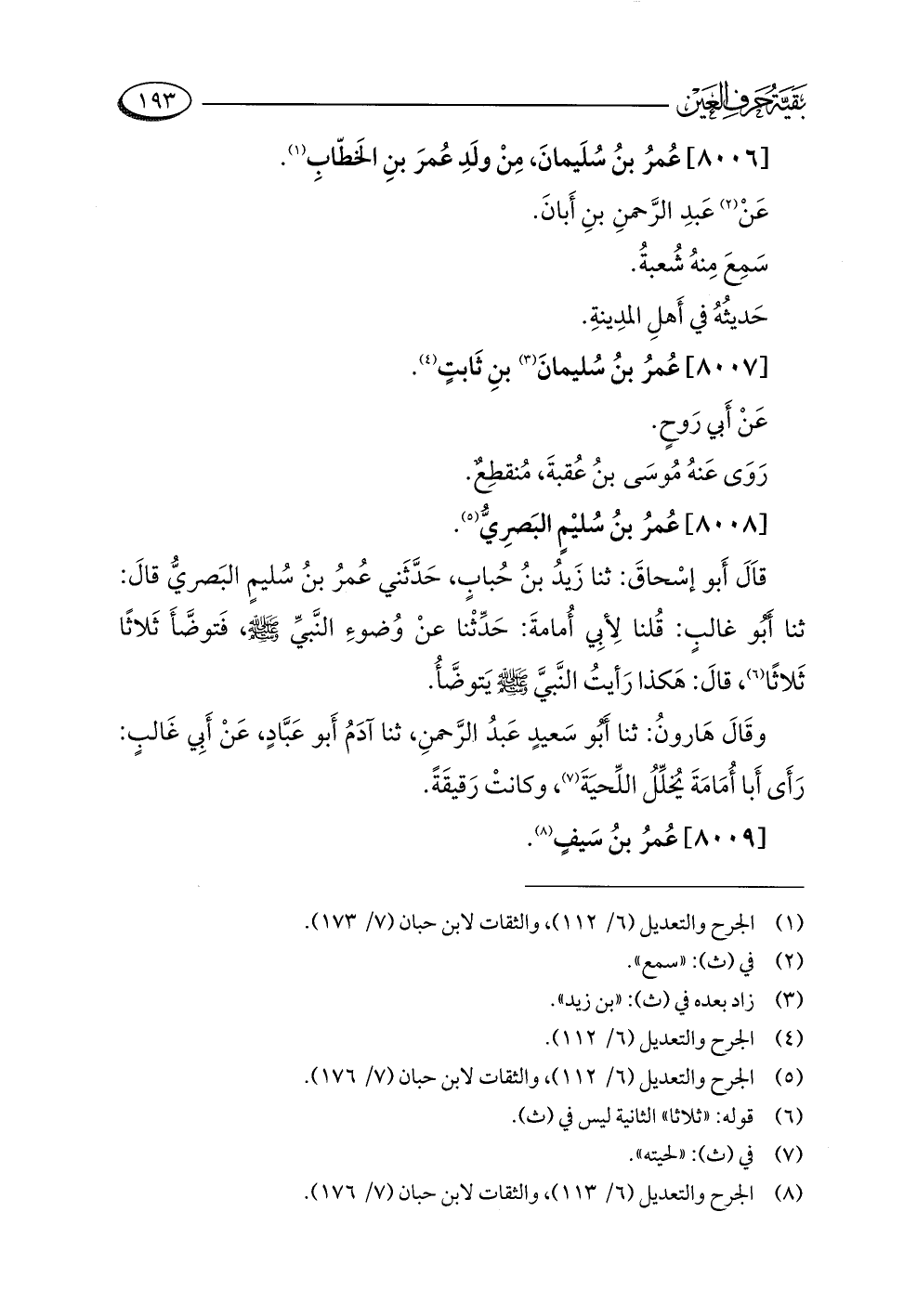 (¬٨) الجرح والتعديل (٦/ ١١٣)، والثقات لابن حبان (٧/ ١٧٦).