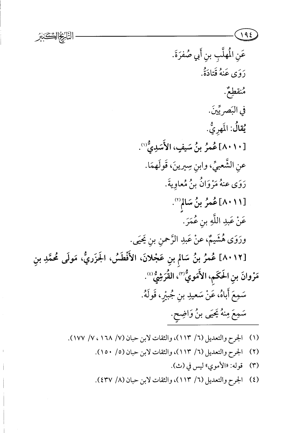 (¬٤) الجرح والتعديل (٦/ ١١٣)، والثقات لابن حبان (٨/ ٤٣٧).