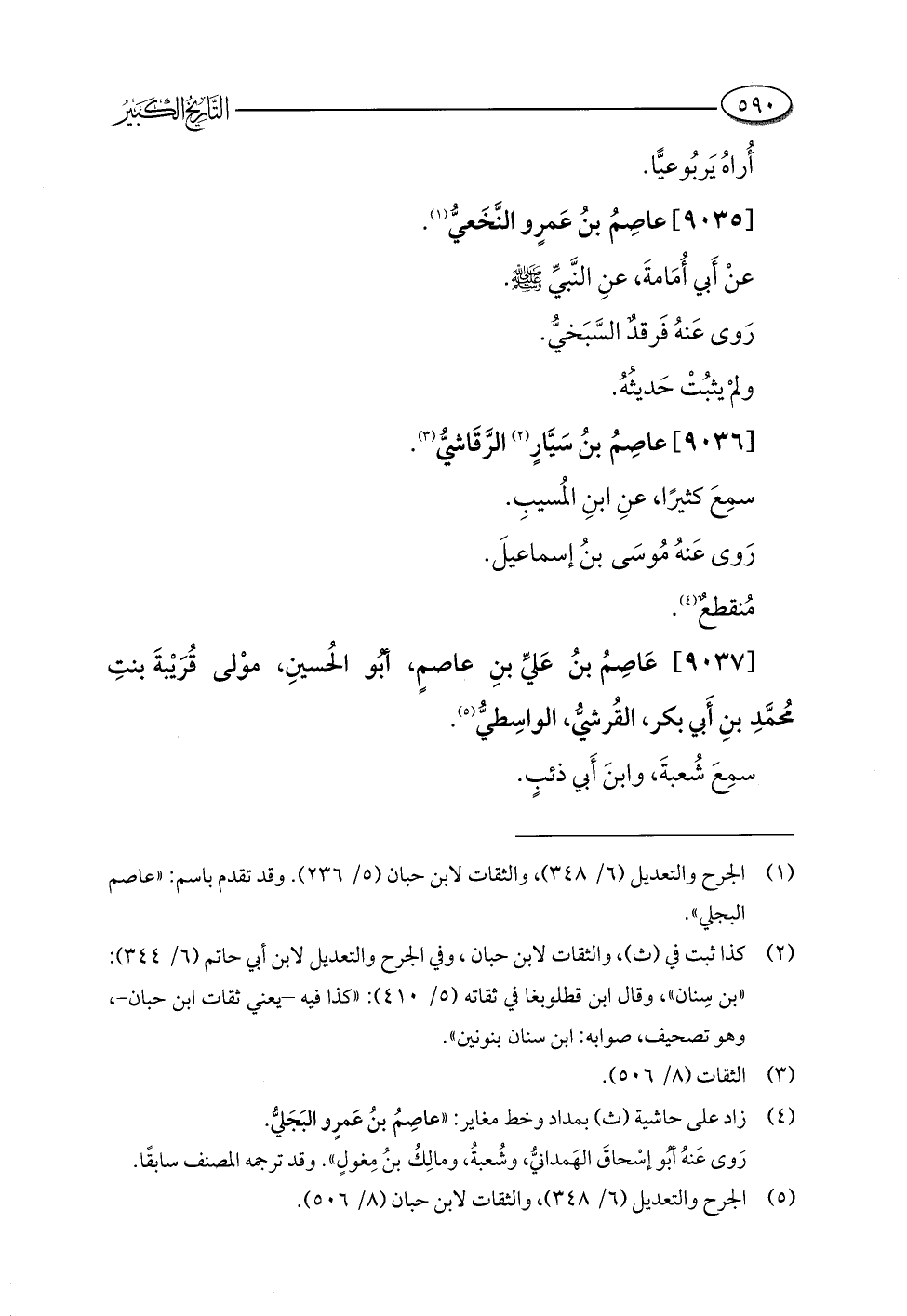 (¬٥) الجرح والتعديل (٦/ ٣٤٨)، والثقات لابن حبان (٨/ ٥٠٦).