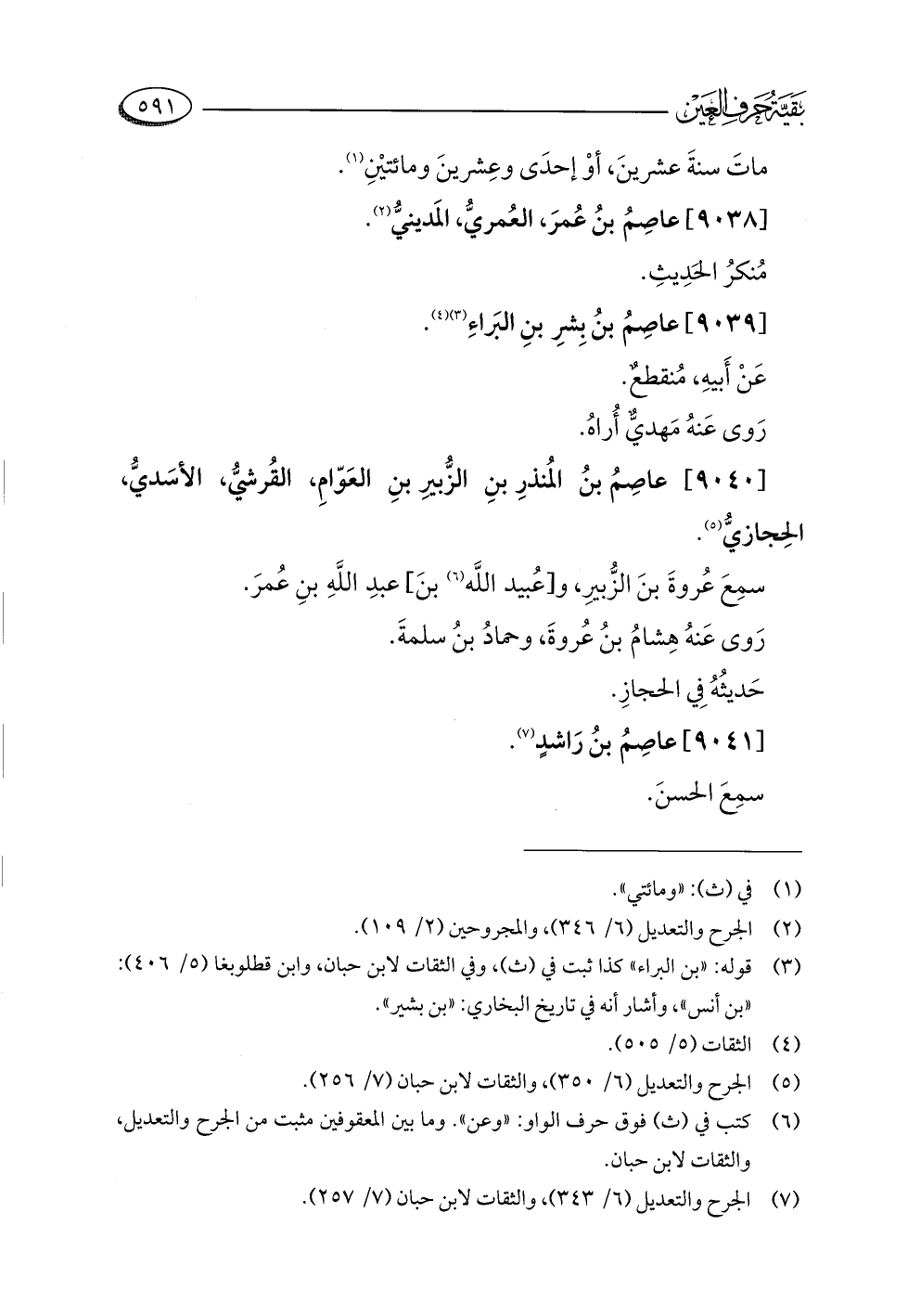 (¬٥) الجرح والتعديل (٦/ ٣٥٠)، والثقات لابن حبان (٧/ ٢٥٦).