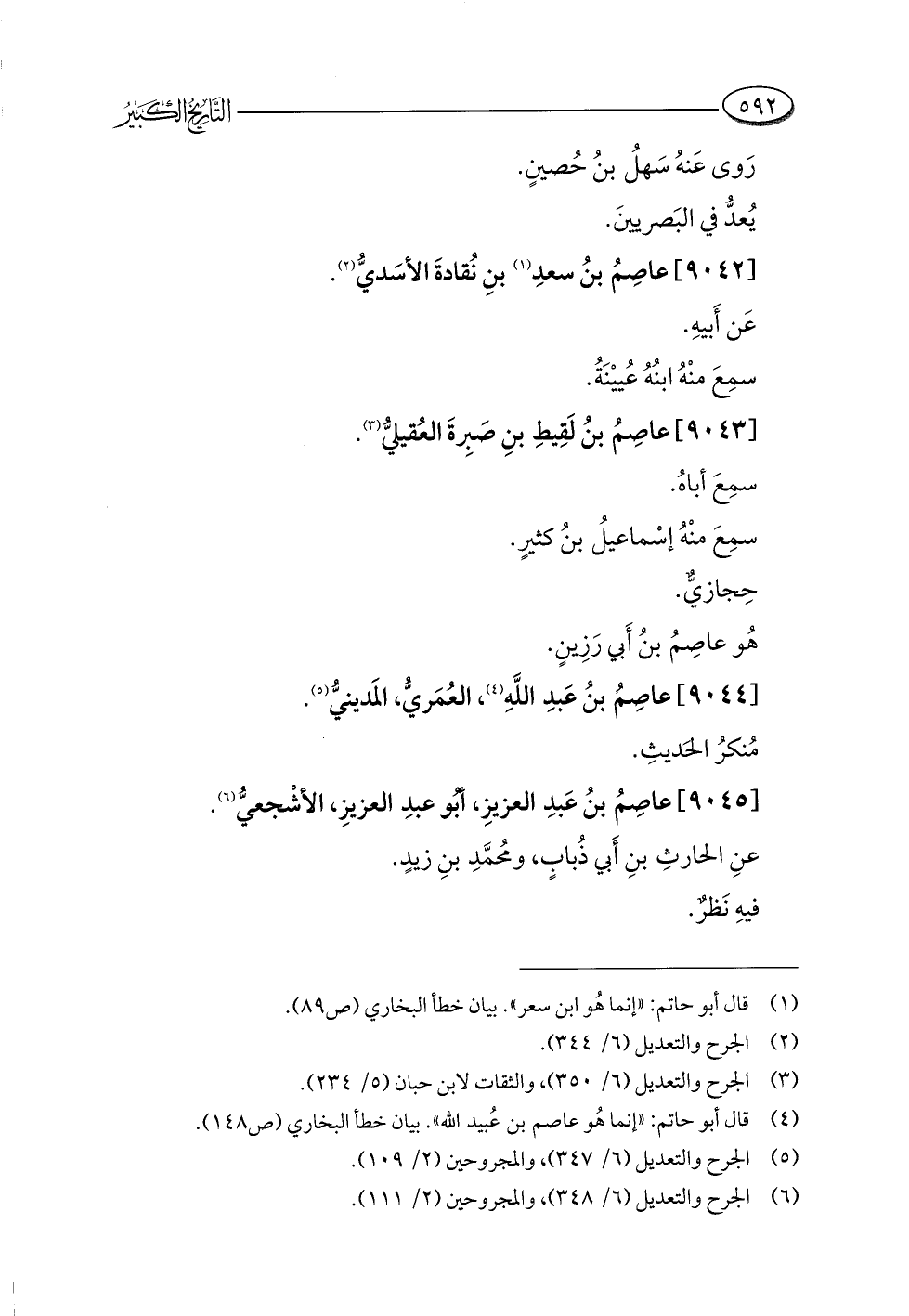 (¬٤) قال أبو حاتم: "إنما هُو عاصم بن عُبيد اللَّه". بيان خطأ البخاري (ص ١٤٨).