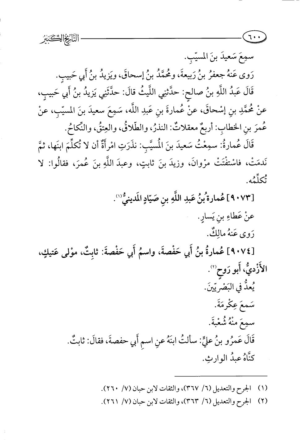 (¬١) الجرح والتعديل (٦/ ٣٦٧)، والثقات لابن حبان (٧/ ٢٦٠).