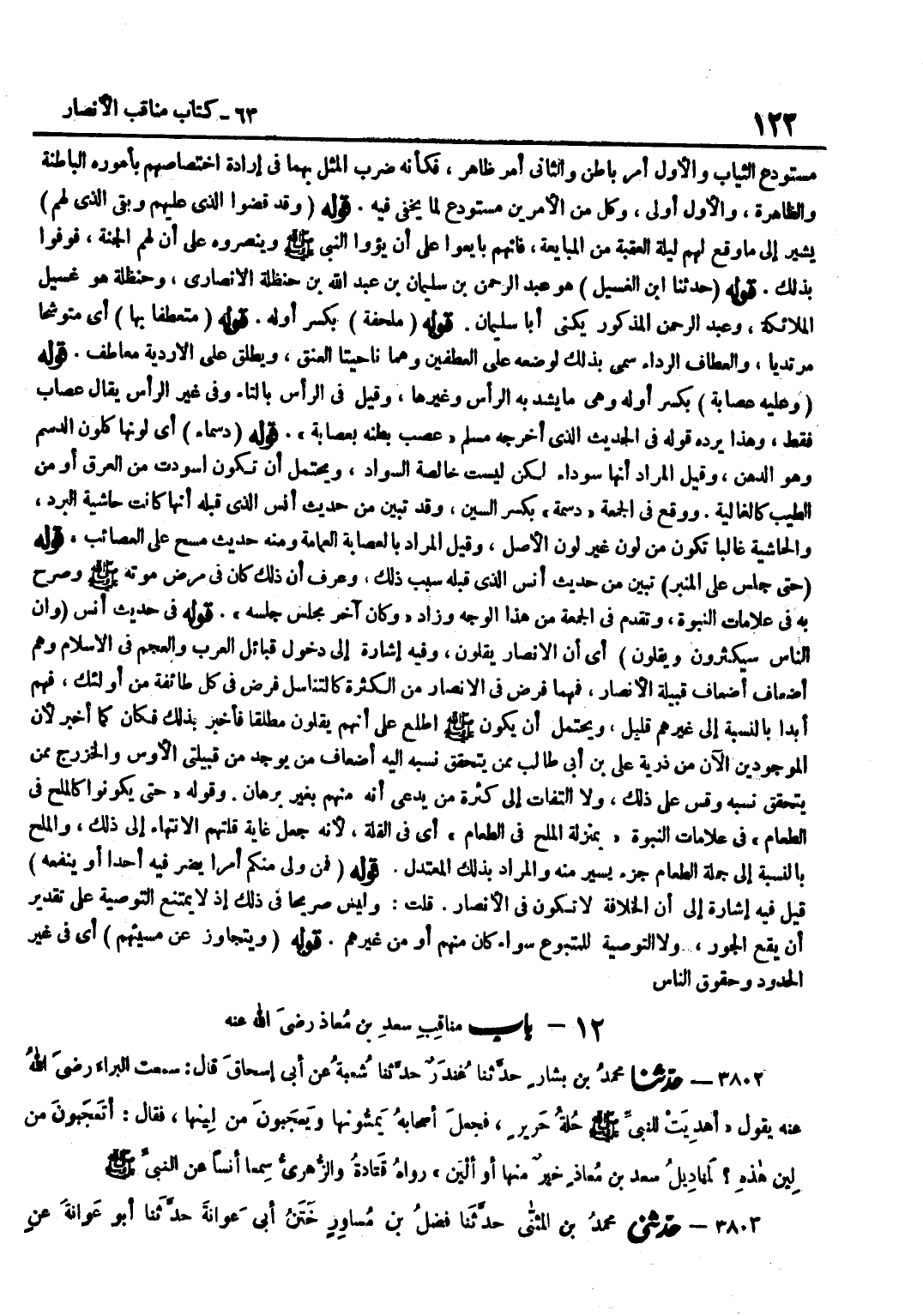 [3800] قَوْلُهُ حَدَّثَنَا بن الْغَسِيلِ هُوَ عَبْدُ الرَّحْمَنِ بْنُ سُلَيْمَانَ بْنِ عَبْدِ اللَّهِ بْنِ حَنْظَلَةَ الْأَنْصَارِيُّ وَحَنْظَلَةُ هُوَ غَسِيلُ الْمَلَائِكَةِ وَعَبْدُ الرَّحْمَنِ الْمَذْكُورُ يُكَنَّى أَبَا سُلَيْمَانَ قَوْلُهُ مِلْحَفَةٌ بِكَسْرِ أَوَّلِهِ قَوْلُهُ مُتَعَطِّفًا بِهَا أَيْ مُتَوَشِّحًا مُرْتَدِيًا وَالْعِطَافُ الرِّدَاءُ سُمِّيَ بِذَلِكَ لِوَضْعِهِ عَلَى الْعِطْفَيْنِ وَهُمَا نَاحِيَتَا الْعُنُقِ وَيُطْلَقُ عَلَى الْأَرْدِيَةِ مَعَاطِفُ قَوْلُهُ وَعَلَيْهِ عِصَابَةٌ بِكَسْرِ أَوَّلِهِ وَهِيَ مَا يُشَدُّ بِهِ الرَّأْسُ وَغَيْرُهَا وَقِيلَ فِي الرَّأْسِ بِالتَّاءِ وَفِي غَيْرِ الرَّأْسِ يُقَالُ عِصَابٌ فَقَطْ وَهَذَا يَرُدُّهُ قَوْلُهُ فِي الْحَدِيثِ الَّذِي أَخْرَجَهُ مُسْلِمٌ عَصَبَ بَطْنَهُ بعصابة قَوْله دسماء أَي لَوْنهَا كَلَوْنِ الدَّسَمِ وَهُوَ الدُّهْنُ وَقِيلَ الْمُرَادُ أَنَّهَا سَوْدَاءُ لَكِنْ لَيْسَتْ خَالِصَةَ السَّوَادِ وَيَحْتَمِلُ أَنْ تَكُونَ اسْوَدَّتْ مِنَ الْعَرَقِ أَوْ مِنَ الطِّيبِ كَالْغَالِيَةِ وَوَقَعَ فِي الْجُمُعَةِ دَسِمَةٌ بِكَسْرِ السِّينِ وَقَدْ تَبَيَّنَ مِنْ حَدِيثِ أَنَسٍ الَّذِي قَبْلَهُ أَنَّهَا كَانَتْ حَاشِيَةَ الْبُرْدِ وَالْحَاشِيَةُ غَالِبًا تَكُونُ مِنْ لَوْنٍ غَيْرِ لَوْنِ الْأَصْلِ وَقِيلَ الْمُرَادُ بِالْعِصَابَةِ الْعِمَامَة وَمِنْه حَدِيث مسح عَلَى الْعَصَائِبِ قَوْلُهُ حَتَّى جَلَسَ عَلَى الْمِنْبَرِ تَبَيَّنَ مِنْ حَدِيثِ أَنَسٍ الَّذِي قَبْلَهُ سَبَبُ ذَلِكَ وَعُرِفَ أَنَّ ذَلِكَ كَانَ فِي مَرَضِ مَوْتِهِ صَلَّى اللَّهُ عَلَيْهِ وَسَلَّمَ وَصَرَّحَ بِهِ فِي عَلَامَاتِ النُّبُوَّةِ وَتَقَدَّمَ فِي الْجُمُعَةِ مِنْ هَذَا الْوَجْهِ وَزَادَ وَكَانَ آخِرُ مَجْلِسٍ جَلَسَهُ قَوْلُهُ فِي حَدِيثِ أَنَسٍ وَإِنَّ النَّاسَ سَيَكْثُرُونَ وَيَقِلُّونَ أَيْ أَنَّ الْأَنْصَارَ يَقِلُّونَ وَفِيهِ إِشَارَةٌ إِلَى دُخُولِ قَبَائِلِ الْعَرَبِ وَالْعَجَمِ فِي الْإِسْلَامِ وَهُمْ أَضْعَافُ أَضْعَافِ قَبِيلَةِ الْأَنْصَارِ فَمَهْمَا فُرِضَ فِي الْأَنْصَارِ مِنَ الْكَثْرَةِ كَالتَّنَاسُلِ فُرِضَ فِي كُلِّ طَائِفَةٍ مِنْ أُولَئِكَ فَهُمْ أَبَدًا بِالنِّسْبَةِ إِلَى غَيْرِهِمْ قَلِيلٌ وَيَحْتَمِلُ أَنْ يَكُونَ صَلَّى اللَّهُ عَلَيْهِ وَسَلَّمَ اطَّلَعَ عَلَى أَنَّهُمْ يَقِلُّونَ مُطْلَقًا فَأَخْبَرَ بِذَلِكَ فَكَانَ كَمَا أَخْبَرَ لِأَنَّ الْمَوْجُودِينَ الْآنَ مِنْ ذُرِّيَّةِ عَلِيِّ بْنِ أَبِي طَالِبٍ مِمَّنْ يَتَحَقَّقُ نَسَبُهُ إِلَيْهِ أَضْعَافُ مَنْ يُوجَدُ مِنْ قَبِيلَتَيْ الْأَوْسِ وَالْخَزْرَجُ مِمَّنْ يَتَحَقَّقُ نَسَبُهُ وَقِسْ عَلَى ذَلِكَ وَلَا الْتِفَاتَ إِلَى كَثْرَةِ مَنْ يَدَّعِي أَنَّهُ مِنْهُمْ بِغَيْرِ بُرْهَانٍ وَقَوْلُهُ حَتَّى يَكُونُوا كَالْمِلْحِ فِي الطَّعَامِ فِي عَلَامَاتِ النُّبُوَّةِ بِمَنْزِلَةِ الْمِلْحِ فِي الطَّعَامِ أَيْ فِي الْقِلَّةِ لِأَنَّهُ جَعَلَ غَايَةَ قِلَّتِهِمُ الِانْتِهَاءَ إِلَى ذَلِكَ وَالْمِلْحُ بِالنِّسْبَةِ إِلَى جُمْلَةِ الطَّعَامِ جُزْءٌ يَسِيرٌ مِنْهُ وَالْمُرَادُ بِذَلِكَ الْمُعْتَدِلُ قَوْلُهُ فَمَنْ وَلِيَ مِنْكُمْ أَمْرًا يَضُرُّ فِيهِ أَحَدًا أَوْ يَنْفَعُهُ قِيلَ فِيهِ إِشَارَةٌ إِلَى أَنَّ الْخِلَافَةَ لَا تَكُونُ فِي الْأَنْصَارِ قُلْتُ وَلَيْسَ صَرِيحًا فِي ذَلِكَ إِذْ لَا يَمْتَنِعُ التَّوْصِيَةُ عَلَى تَقْدِيرِ أَنْ يَقَعَ الْجَوْرُ وَلَا التَّوْصِيَةُ لِلْمَتْبُوعِ سَوَاءٌ كَانَ مِنْهُمْ أَوْ مِنْ غَيْرِهِمْ قَوْلُهُ وَيَتَجَاوَزُ عَنْ مُسِيئِهِمْ أَيْ فِي غَيْرِ الْحُدُود وَحُقُوق النَّاس