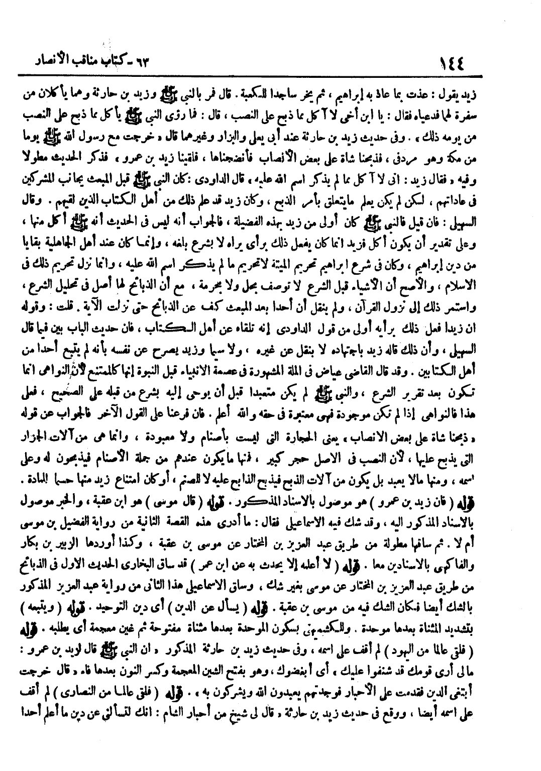 [3827] قَوْلُهُ قَالَ مُوسَى هُوَ بن عُقْبَةَ وَالْخَبَرُ مَوْصُولٌ بِالْإِسْنَادِ الْمَذْكُورِ إِلَيْهِ وَقَدْ شَكَّ فِيهِ الْإِسْمَاعِيلِيُّ فَقَالَ مَا أَدْرِي هَذِهِ الْقِصَّةُ الثَّانِيَةُ مِنْ رِوَايَةِ الْفُضَيْلِ بْنِ مُوسَى أَمْ لَا ثُمَّ سَاقَهَا مُطَوَّلَةً مِنْ طَرِيقِ عَبْدِ الْعَزِيزِ بْنِ الْمُخْتَارِ عَنْ مُوسَى بْنِ عُقْبَةَ وَكَذَا أَوْرَدَهَا الزُّبَيْرُ بْنُ بَكَّارٍ وَالْفَاكِهِيُّ بِالْإِسْنَادَيْنِ مَعًا قَوْلُهُ لَا أَعْلَمُهُ إِلَّا يُحَدِّثُ بِهِ عَن بن عُمَرَ قَدْ سَاقَ الْبُخَارِيُّ الْحَدِيثَ الْأَوَّلَ فِي الذَّبَائِحِ مِنْ طَرِيقِ عَبْدِ الْعَزِيزِ بْنِ الْمُخْتَارِ عَنْ مُوسَى بِغَيْرِ شَكٍّ وَسَاقَ الْإِسْمَاعِيلِيُّ هَذَا الثَّانِيَ مِنْ رِوَايَةِ عَبْدِ الْعَزِيزِ الْمَذْكُورِ بِالشَّكِّ أَيْضًا فَكَانَ الشَّكُّ فِيهِ مِنْ مُوسَى بْنِ عُقْبَةَ قَوْلُهُ يَسْأَلُ عَنِ الدِّينِ أَيْ دِينِ التَّوْحِيدِ قَوْلُهُ وَيَتَّبِعُهُ بِتَشْدِيدِ الْمُثَنَّاةِ بَعْدَهَا مُوَحَّدَةٌ وَلِلْكُشْمِيهَنِيِّ بِسُكُونِ الْمُوَحَّدَةِ بَعْدَهَا مُثَنَّاةٌ مَفْتُوحَةٌ ثُمَّ غين مُعْجَمَةٌ أَيْ يَطْلُبُهُ قَوْلُهُ فَلَقِيَ عَالِمًا مِنَ الْيَهُودِ لَمْ أَقِفْ عَلَى اسْمِهِ وَفِي حَدِيثِ زَيْدِ بْنِ حَارِثَةَ الْمَذْكُورِ أَنَّ النَّبِيَّ صَلَّى اللَّهُ عَلَيْهِ وَسَلَّمَ قَالَ لِزَيْدِ بْنِ عَمْرٍو مَالِي أَرَى قَوْمَكَ قَدْ شَنِفُوا عَلَيْكَ أَيْ أَبْغَضُوكَ وَهُوَ بِفَتْحِ الشِّينِ الْمُعْجَمَةِ وَكَسْرِ النُّونِ بَعْدَهَا فَاءٌ قَالَ خَرَجْتُ أَبْتَغِي الدِّينَ فَقَدِمْتُ عَلَى الْأَحْبَارِ فَوَجَدْتُهُمْ يَعْبُدُونَ اللَّهَ وَيُشْرِكُونَ بِهِ قَوْلُهُ فَلَقِيَ عَالِمًا مِنَ النَّصَارَى لَمْ أَقِفْ عَلَى اسْمِهِ أَيْضًا وَوَقَعَ فِي حَدِيثِ زَيْدِ بْنِ حَارِثَةَ قَالَ لِي شَيْخٌ مِنْ أَحْبَارِ الشَّامِ إِنَّكَ لَتَسْأَلُنِي عَنْ دِينٍ مَا أَعْلَمُ أَحَدًا