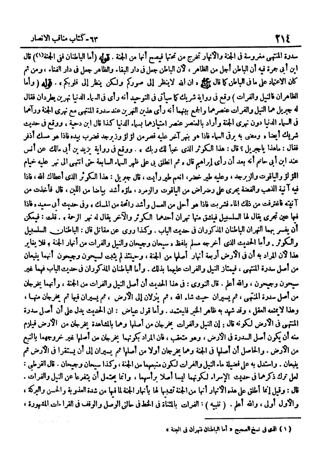 سِدْرَةُ الْمُنْتَهَى مَغْرُوسَةً فِي الْجَنَّةِ وَالْأَنْهَارُ تَخْرُجُ مِنْ تَحْتِهَا فَيَصِحُّ أَنَّهَا مِنَ الْجَنَّةِ قَوْلُهُ اما الباطنان فَفِي الْجنَّة قَالَ بن أَبِي جَمْرَةَ فِيهِ أَنَّ الْبَاطِنَ أَجَلُّ مِنَ الظَّاهِرِ لِأَنَّ الْبَاطِنَ جُعِلَ فِي دَارِ الْبَقَاءِ وَالظَّاهِرَ جُعِلَ فِي دَارِ الْفِنَاءِ وَمِنْ ثَمَّ كَانَ الِاعْتِمَادُ عَلَى مَا فِي الْبَاطِنِ كَمَا قَالَ صَلَّى اللَّهُ عَلَيْهِ وَسَلَّمَ إِنَّ اللَّهَ لَا يَنْظُرُ إِلَى صُوَرِكُمْ وَلَكِنْ يَنْظُرُ إِلَى قُلُوبِكُمْ قَوْلُهُ وَأَمَّا الظَّاهِرَانِ فَالنِّيلُ وَالْفُرَاتُ وَقَعَ فِي رِوَايَةِ شَرِيكٍ كَمَا سَيَأْتِي فِي التَّوْحِيدِ أَنَّهُ رَأَى فِي السَّمَاءِ الدُّنْيَا نَهْرَيْنِ يَطَّرِدَانِ فَقَالَ لَهُ جِبْرِيلُ هُمَا النِّيلُ وَالْفُرَاتُ عُنْصُرُهُمَا وَالْجَمْعُ بَيْنَهُمَا أَنَّهُ رَأَى هَذَيْنِ النَّهْرَيْنِ عِنْدَ سِدْرَةِ الْمُنْتَهَى مَعَ نَهْرَيِ الْجَنَّةِ وَرَآهُمَا فِي السَّمَاءِ الدُّنْيَا دُونَ نَهْرَيِ الْجَنَّةِ وَأَرَادَ بِالْعُنْصُرِ عنصر امتيازهما بسماء الدُّنْيَا كَذَا قَالَ بن دِحْيَةَ وَوَقَعَ فِي حَدِيثِ شَرِيكٍ أَيْضًا وَمَضَى بِهِ يَرْقَى السَّمَاءَ فَإِذَا هُوَ بِنَهْرٍ آخَرَ عَلَيْهِ قَصْرٌ مِنْ لُؤْلُؤٍ وَزَبَرْجَدٍ فَضَرَبَ بِيَدِهِ فَإِذَا هُوَ مِسْكٌ أَذْفَرُ فَقَالَ مَا هَذَا يَا جِبْرِيلُ قَالَ هَذَا الْكَوْثَرُ الَّذِي خَبَّأَ لَكَ رَبُّكَ وَوَقَعَ فِي رِوَايَةِ يَزِيدَ بْنِ أَبِي مَالِكٍ عَنْ أنس عِنْد بن أَبِي حَاتِمٍ أَنَّهُ بَعْدَ أَنْ رَأَى إِبْرَاهِيمَ قَالَ ثُمَّ انْطَلَقَ بِي عَلَى ظَهْرِ السَّمَاءِ السَّابِعَةِ حَتَّى انْتَهَى إِلَى نَهْرٍ عَلَيْهِ خِيَامُ اللُّؤْلُؤِ وَالْيَاقُوتِ وَالزَّبَرْجَدِ وَعَلَيْهِ طَيْرٌ خُضْرٌ أَنْعَمَ طَيْرٍ رَأَيْتُ قَالَ جِبْرِيلُ هَذَا الْكَوْثَرُ الَّذِي أَعْطَاكَ اللَّهُ فَإِذَا فِيهِ آنِيَةُ الذَّهَبِ وَالْفِضَّةِ يَجْرِي عَلَى رَضْرَاضٍ مِنَ الْيَاقُوتِ وَالزُّمُرُّدِ مَاؤُهُ أَشَدُّ بَيَاضًا مِنَ اللَّبَنِ قَالَ فَأَخَذْتُ مِنْ آنِيَتِهِ فَاغْتَرَفْتُ مِنْ ذَلِكَ الْمَاءِ فَشَرِبْتُ فَإِذَا هُوَ أَحْلَى مِنَ الْعَسَلِ وَأَشَدُّ رَائِحَةً مِنَ الْمِسْكِ وَفِي حَدِيثِ أَبِي سَعِيدٍ فَإِذَا فِيهَا عَيْنٌ تَجْرِي يُقَالُ لَهَا السَّلْسَبِيلُ فَيَنْشَقُّ مِنْهَا نَهْرَانِ أَحَدُهُمَا الْكَوْثَرُ وَالْآخَرُ يُقَالُ لَهُ نَهْرُ الرَّحْمَةِ قُلْتُ فَيُمْكِنُ أَنْ يُفَسَّرَ بِهِمَا النَّهْرَانِ الْبَاطِنَانِ الْمَذْكُورَانِ فِي حَدِيثِ الْبَابِ وَكَذَا رُوِيَ عَنْ مُقَاتِلٍ قَالَ الْبَاطِنَانِ السَّلْسَبِيلُ وَالْكَوْثَرُ وَأَمَّا الْحَدِيثُ الَّذِي أَخْرَجَهُ مُسْلِمٌ بِلَفْظِ سَيْحَانُ وَجَيْحَانُ وَالنِّيلُ وَالْفُرَاتُ مِنْ أَنْهَارِ الْجَنَّةِ فَلَا يُغَايِرُ هَذَا لِأَنَّ الْمُرَادَ بِهِ أَنَّ فِي الْأَرْضِ أَرْبَعَةَ أَنْهَارٍ أَصْلُهَا مِنَ الْجَنَّةِ وَحِينَئِذٍ لَمْ يَثْبُتْ لِسَيْحُونَ وَجَيْحُونَ أَنَّهُمَا يَنْبُعَانِ مِنْ أَصْلِ سِدْرَةِ الْمُنْتَهَى فَيَمْتَازُ النِّيلُ وَالْفُرَاتُ عَلَيْهِمَا بِذَلِكَ وَأَمَّا الْبَاطِنَانِ الْمَذْكُورَانِ فِي حَدِيثِ الْبَابِ فَهُمَا غَيْرُ سَيْحُونَ وَجَيْحُونَ وَاللَّهُ أَعْلَمُ قَالَ النَّوَوِيُّ فِي هَذَا الْحَدِيثِ أَنَّ أَصْلَ النِّيلِ وَالْفُرَاتِ مِنَ الْجَنَّةِ وَأَنَّهُمَا يَخْرُجَانِ مِنْ أَصْلِ سِدْرَةِ الْمُنْتَهَى ثُمَّ يَسِيرَانِ حَيْثُ شَاءَ اللَّهُ ثُمَّ يَنْزِلَانِ إِلَى الْأَرْضِ ثُمَّ يَسِيرَانِ فِيهَا ثُمَّ يَخْرُجَانِ مِنْهَا وَهَذَا لَا يَمْنَعُهُ الْعَقْلُ وَقَدْ شَهِدَ بِهِ ظَاهِرُ الْخَبَرِ فَلْ