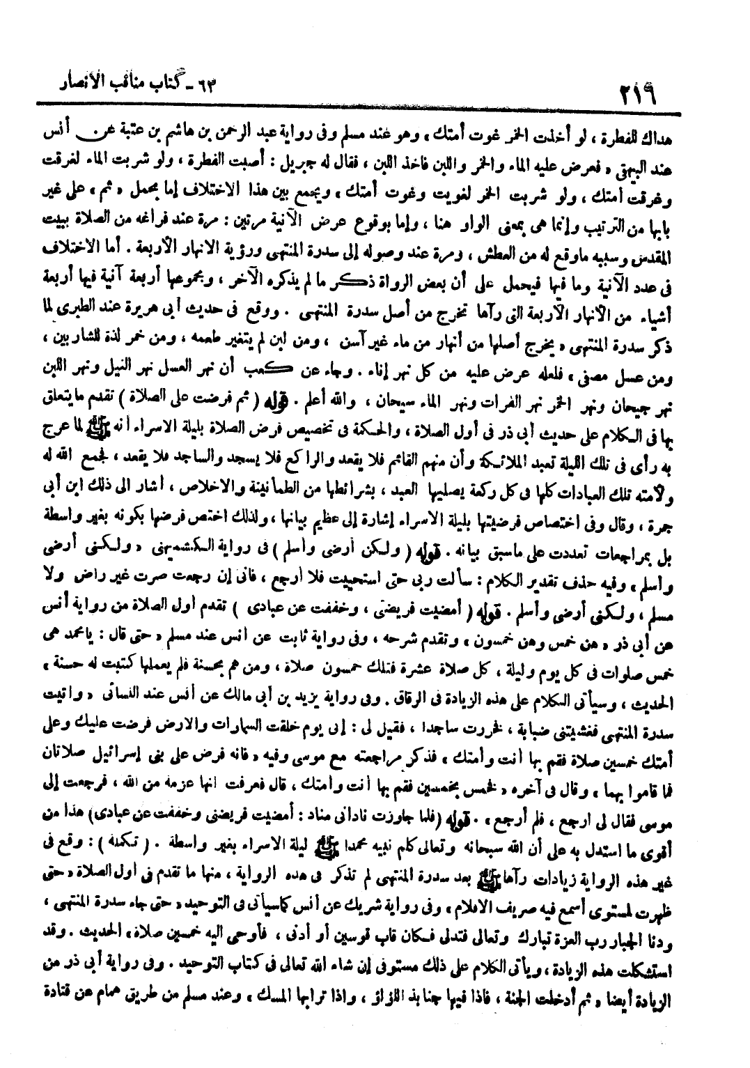 هَدَاكَ لِلْفِطْرَةِ لَوْ أَخَذْتَ الْخَمْرَ غَوَتْ أُمَّتُكَ وَهُوَ عِنْدَ مُسْلِمٍ وَفِي رِوَايَةِ عَبْدِ الرَّحْمَنِ بْنِ هَاشِمِ بْنِ عُتْبَةَ عَنْ أَنَسٍ عِنْدَ الْبَيْهَقِيِّ فَعَرَضَ عَلَيْهِ الْمَاءَ وَالْخَمْرَ وَاللَّبَنَ فَأَخَذَ اللَّبَنَ فَقَالَ لَهُ جِبْرِيلُ أَصَبْتَ الْفِطْرَةَ وَلَوْ شَرِبْتَ الْمَاءَ لَغَرِقْتَ وَغَرِقَتْ أُمَّتُكَ وَلَوْ شَرِبْتَ الْخَمْرَ لَغَوَيْتَ وَغَوَتْ أُمَّتُكَ وَيُجْمَعُ بَيْنَ هَذَا الِاخْتِلَافِ إِمَّا بِحَمْلِ ثُمَّ عَلَى غَيْرِ بَابِهَا مِنَ التَّرْتِيبِ وَإِنَّمَا هِيَ بِمَعْنَى الْوَاوِ هُنَا وَإِمَّا بِوُقُوعِ عَرْضِ الْآنِيَةِ مَرَّتَيْنِ مَرَّةً عِنْدَ فَرَاغِهِ مِنَ الصَّلَاةِ بِبَيْتِ الْمَقْدِسِ وَسَبَبُهُ مَا وَقَعَ لَهُ مِنَ الْعَطَشِ وَمَرَّةً عِنْدَ وُصُولِهِ إِلَى سِدْرَةِ الْمُنْتَهَى وَرُؤْيَةِ الْأَنْهَارِ الْأَرْبَعَةِ أَمَّا الِاخْتِلَافُ فِي عَدَدِ الْآنِيَةِ وَمَا فِيهَا فَيُحْمَلُ عَلَى أَنَّ بَعْضَ الرُّوَاةِ ذَكَرَ مَا لَمْ يَذْكُرْهُ الْآخَرُ وَمَجْمُوعُهَا أَرْبَعَةُ آنِيَةٍ فِيهَا أَرْبَعَةُ أَشْيَاءَ مِنَ الْأَنْهَارِ الْأَرْبَعَةِ الَّتِي رَآهَا تَخْرُجُ مِنْ أَصْلِ سِدْرَةِ الْمُنْتَهَى وَوَقَعَ فِي حَدِيثِ أَبِي هُرَيْرَةَ عِنْدَ الطَّبَرِيِّ لَمَّا ذَكَرَ سِدْرَةَ الْمُنْتَهَى يَخْرُجُ أَصْلُهَا مِنْ أَنْهَارٍ مِنْ مَاءٍ غَيْرِ آسِنٍ وَمِنْ لَبَنٍ لَمْ يَتَغَيَّرْ طَعْمُهُ وَمِنْ خَمْرٍ لَذَّةٍ لِلشَّارِبِينَ وَمِنْ عَسَلٍ مُصَفًّى فَلَعَلَّهُ عُرِضَ عَلَيْهِ مِنْ كُلِّ نَهْرٍ إِنَاءٌ وَجَاءَ عَنْ كَعْبٍ أَنَّ نَهْرِ الْعَسَلِ نَهْرُ النِّيلِ وَنَهْرَ اللَّبَنِ نَهْرُ جَيْحَانَ وَنَهْرَ الْخَمْرِ نَهْرُ الْفُرَاتِ وَنَهْرَ الْمَاءِ سَيْحَانُ وَاللَّهُ أَعْلَمُ قَوْلُهُ ثُمَّ فُرِضَتْ عَلَيَّ الصَّلَاةُ تَقَدَّمَ مَا يَتَعَلَّقُ بِهَا فِي الْكَلَامِ عَلَى حَدِيثِ أَبِي ذَرٍّ فِي أَوَّلِ الصَّلَاةِ وَالْحِكْمَةُ فِي تَخْصِيصِ فَرْضِ الصَّلَاةِ بِلَيْلَةِ الْإِسْرَاءِ أَنَّهُ صَلَّى اللَّهُ عَلَيْهِ وَسَلَّمَ لَمَّا عُرِجَ بِهِ رَأَى فِي تِلْكَ اللَّيْلَةِ تَعَبُّدَ الْمَلَائِكَةِ وَأَنَّ مِنْهُمُ الْقَائِمَ فَلَا يَقْعُدُ وَالرَّاكِعَ فَلَا يَسْجُدُ وَالسَّاجِدَ فَلَا يَقْعُدُ فَجَمَعَ اللَّهُ لَهُ وَلِأُمَّتِهِ تِلْكَ الْعِبَادَاتِ كُلَّهَا فِي كُلِّ رَكْعَةٍ يُصَلِّيهَا الْعَبْدُ بِشَرَائِطِهَا من الطُّمَأْنِينَة وَالْإِخْلَاص أَشَارَ إِلَى ذَلِك بن أبي جَمْرَة وَقَالَ وَفِي اخْتِصَاصِ فَرْضِيَّتِهَا بِلَيْلَةِ الْإِسْرَاءِ إِشَارَةٌ إِلَى عَظِيمِ بَيَانِهَا وَلِذَلِكَ اخْتُصَّ فَرْضُهَا بِكَوْنِهِ بِغَيْرِ وَاسِطَةٍ بَلْ بِمُرَاجَعَاتٍ تَعَدَّدَتْ عَلَى مَا سَبَقَ بَيَانُهُ قَوْلُهُ وَلَكِنْ أَرْضَى وَأُسَلِّمُ فِي رِوَايَةِ الْكُشْمِيهَنِيِّ وَلَكِنِّي ارضى واسلم وَفِيه حذف تَقْدِير الْكَلَامِ سَأَلْتُ رَبِّي حَتَّى اسْتَحْيَيْتُ فَلَا أَرْجِعُ فَإِنِّي إِنْ رَجَعْتُ صِرْتُ غَيْرَ رَاضٍ وَلَا مُسَلِّمٌ وَلَكِنِّي أَرْضَى وَأُسَلِّمُ قَوْلُهُ أَمْضَيْتُ فَرِيضَتِي وَخَفَّفْتُ عَنْ عِبَادِي تَقَدَّمَ أَوَّلَ الصَّلَاةِ مِنْ رِوَايَةِ أَنَسٍ عَنْ أَبِي ذَرٍّ هُنَّ خَمْسٌ وَهُنَّ خَمْسُونَ وَتَقَدَّمَ شَرْحُهُ وَفِي رِوَايَةِ ثَابِتٍ عَنْ أَنَسٍ عِنْدَ مُسْلِمٍ حَتَّى قَالَ يَا مُحَمَّدُ هِيَ خَمْسُ صَلَوَاتٍ فِي كُلِّ يَوْمٍ وَلَيْلَةٍ كُلُّ صَلَاةٍ عَشْرَةٌ فَتِلْكَ خَمْسُونَ صَلَاةً وَمَنْ هَمَّ بِحَسَنَةٍ فَلَمْ يَعْمَلْهَا كُتِبَتْ لَهُ حَسَنَةٌ الْحَدِيثَ وَسَيَأْتِي الْكَلَامُ عَلَى هَذِهِ الزِّيَادَةِ فِي الرِّقَاقِ وَفِي رِوَايَةِ يَزِيدَ بْنِ