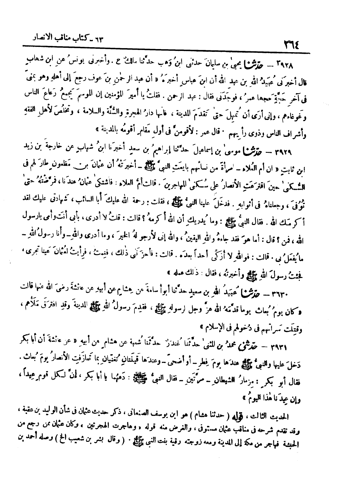 [3927] قَوْله حَدثنَا هِشَام هُوَ بن يُوسُفَ الصَّنْعَانِيُّ ذَكَرَ حَدِيثَ عُثْمَانَ فِي شَأْنِ الْوَلِيدِ بْنِ عُقْبَةَ وَقَدْ تَقَدَّمَ شَرْحُهُ فِي مَنَاقِبِ عُثْمَانَ مُسْتَوْفًى وَالْغَرَضُ مِنْهُ قَوْلُهُ وَهَاجَرْتُ الْهِجْرَتَيْنِ وَكَانَ عُثْمَانُ مِمَّنْ رَجَعَ مِنَ الْحَبَشَةِ فَهَاجَرَ مِنْ مَكَّةَ إِلَى الْمَدِينَةِ وَمَعَهُ زَوْجَتُهُ رُقَيَّةَ بِنْتِ النَّبِيِّ صَلَّى اللَّهُ عَلَيْهِ وَسَلَّمَ وَقَالَ بِشْرُ بْنُ شُعَيْبٍ إِلَخْ وَصَلَهُ أَحْمَدُ بْنُ حَنْبَلٍ فِي مُسْنَدِهِ عَنْهُ بِتَمَامِهِ قَوْلُهُ تَابَعَهُ إِسْحَاقُ الْكَلْبِيُّ وَصَلَهُ أَبُو بَكْرِ بْنِ شَاذَانَ فِيمَا رُوِّينَاهُ مِنْ طَرِيقِهِ بِإِسْنَادِهِ إِلَى يَحْيَى بْنِ صَالِحٍ عَنْ إِسْحَاقَ الْكَلْبِيِّ عَنِ عَنِ الزُّهْرِيِّ فَذَكَرَهُ بِتَمَامِهِ وَفِيهِ أَنَّهُ جَلَدَ الْوَلِيدَ أَرْبَعِينَ وَقَدْ تَقَدَّمَ الْبَحْثُ فِي ذَلِكَ فِي مَنَاقِبِ عُثْمَانَ الْحَدِيثُ الرَّابِعُ ذَكَرَ طَرَفًا مِنْ قِصَّةِ عَبْدِ الرَّحْمَنِ بْنِ عَوْفٍ مَعَ عُمَرَ وَفِيهِ خُطْبَةُ عُمَرَ وَالْغَرَضُ مِنْهُ قَوْلُ عَبْدِ الرَّحْمَنِ حَتَّى تَقْدَمَ الْمَدِينَةَ فَإِنَّهَا دَارُ الْهِجْرَةِ وَالسُّنَّةِ وَوَقَعَ فِي رِوَايَةِ الْكُشْمِيهَنِيِّ وَالسَّلَامَةِ بَدَلَ السُّنَّةِ الْحَدِيثُ الْخَامِسُ