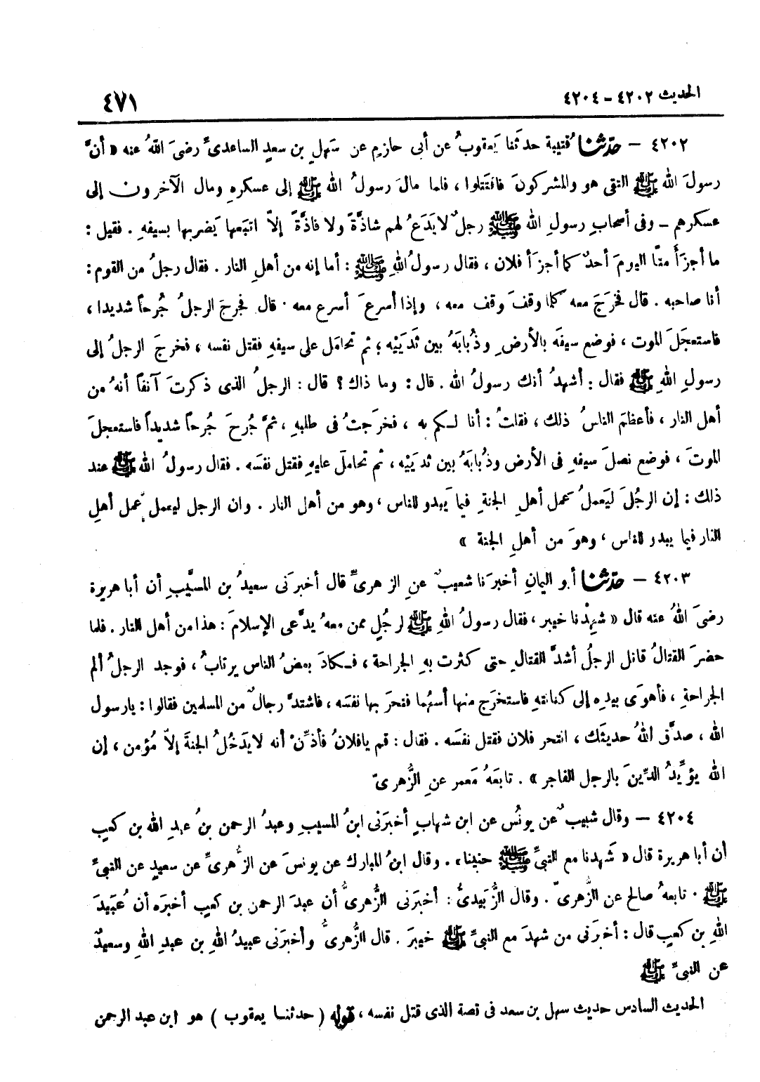 (الْحَدِيثُ السَّادِسُ حَدِيثَ سَهْلِ بْنِ سَعْدٍ فِي قِصَّةِ الَّذِي قَتَلَ نَفْسَهُ)