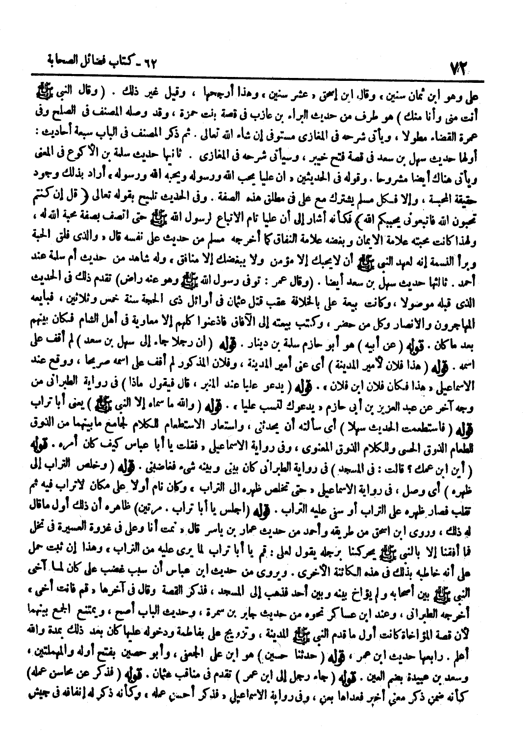 [3703] قَوْلُهُ عَنْ أَبِيهِ هُوَ أَبُو حَازِمٍ سَلَمَةُ بْنُ دِينَارٍ قَوْلُهُ إِنَّ رَجُلًا جَاءَ إِلَى سَهْلِ بْنِ سَعْدٍ لَمْ أَقِفْ عَلَى اسْمِهِ قَوْلُهُ هَذَا فُلَانٌ لِأَمِيرِ الْمَدِينَةِ أَيْ عَنَى أَمِيرَ الْمَدِينَةِ وَفُلَانٌ الْمَذْكُورُ لَمْ أَقِفْ عَلَى اسْمِهِ صَرِيحًا وَوَقَعَ عِنْدَ الْإِسْمَاعِيلِيِّ هَذَا فَكَانَ فُلَانَ بن فُلَانٍ قَوْلُهُ يَدْعُو عَلِيًّا عِنْدَ الْمِنْبَرِ قَالَ فَيَقُولُ مَاذَا فِي رِوَايَةِ الطَّبَرَانِيِّ مِنْ وَجْهٍ آخَرَ عَنْ عَبْدِ الْعَزِيزِ بْنِ أَبِي حَازِمٍ يَدْعُوكَ لِتَسُبَّ عَلِيًّا قَوْلُهُ وَاللَّهِ مَا سَمَّاهُ إِلَّا النَّبِيُّ صَلَّى اللَّهُ عَلَيْهِ وَسَلَّمَ يَعْنِي أَبَا تُرَابٍ قَوْلُهُ فَاسْتَطْعَمْتُ الْحَدِيثَ سَهْلًا أَيْ سَأَلْتُهُ أَنْ يُحَدِّثَنِي وَاسْتَعَارَ الِاسْتِطْعَامَ لِلْكَلَامِ لِجَامِعِ مَا بَيْنَهُمَا مِنَ الذَّوْقِ لِلطَّعَامِ الذَّوْقُ الْحِسِّيُّ وَلِلْكَلَامِ الذَّوْقُ الْمَعْنَوِيُّ وَفِي رِوَايَةِ الْإِسْمَاعِيلِيِّ فَقُلْتُ يَا أَبَا عَبَّاسٍ كَيْفَ كَانَ أَمْرُهُ قَوْلُهُ أَيْن بن عَمِّكِ قَالَتْ فِي الْمَسْجِدِ فِي رِوَايَةِ الطَّبَرَانِيِّ كَانَ بَيْنِي وَبَيْنَهُ شَيْءٌ فَغَاضَبَنِي قَوْلُهُ وَخَلُصَ التُّرَابُ إِلَى ظَهْرِهِ أَيْ وَصَلَ فِي رِوَايَةِ الْإِسْمَاعِيلِيِّ حَتَّى تَخَلَّصَ ظَهْرُهُ إِلَى التُّرَابِ وَكَانَ نَام اولا على مَكَان لاتراب فِيهِ ثُمَّ تَقَلَّبَ فَصَارَ ظَهْرُهُ عَلَى التُّرَابِ أَوْ سَفَى عَلَيْهِ التُّرَابُ قَوْلُهُ اجْلِسْ يَا أَبَا تُرَابٍ مَرَّتَيْنِ ظَاهِرُهُ أَنَّ ذَلِكَ أَوَّلُ مَا قَالَ لَهُ ذَلِك وروى بن إِسْحَاقَ مِنْ طَرِيقِهِ وَأَحْمَدُ مِنْ حَدِيثِ عَمَّارِ بْنِ يَاسِرٍ قَالَ نِمْتُ أَنَا وَعَلِيٌّ فِي غَزْوَةِ الْعَسِيرَةِ فِي نَخْلٍ فَمَا أَفَقْنَا إِلَّا بِالنَّبِيِّ صَلَّى اللَّهُ عَلَيْهِ وَسَلَّمَ يُحَرِّكُنَا بِرِجْلِهِ يَقُولُ لِعَلِيٍّ قُمْ يَا أَبَا تُرَابٍ لِمَا يَرَى عَلَيْهِ مِنَ التُّرَابِ وَهَذَا إِنْ ثَبَتَ حُمِلَ عَلَى أَنَّهُ خَاطَبَهُ بِذَلِكَ فِي هَذِهِ الكائنة الْأُخْرَى ويروى من حَدِيث بن عَبَّاسٍ أَنَّ سَبَبَ غَضَبِ عَلِيٍّ كَانَ لِمَا آخَى النَّبِيُّ صَلَّى اللَّهُ عَلَيْهِ وَسَلَّمَ بَيْنَ أَصْحَابِهِ وَلَمْ يُؤَاخِ بَيْنَهُ وَبَيْنَ أَحَدٍ فَذَهَبَ إِلَى الْمَسْجِدِ فَذَكَرَ الْقِصَّةَ وَقَالَ فِي آخِرِهَا قُم فَأَنت أخي أخرجه الطَّبَرَانِيّ وَعند بن عَسَاكِرَ نَحْوَهُ مِنْ حَدِيثِ جَابِرِ بْنِ سَمُرَةَ وَحَدِيثُ الْبَابِ أَصَحُّ وَيَمْتَنِعُ الْجَمْعُ بَيْنَهُمَا لِأَنَّ قِصَّةَ الْمُؤَاخَاةِ كَانَتْ أَوَّلَ مَا قَدِمَ النَّبِيُّ صَلَّى اللَّهُ عَلَيْهِ وَسَلَّمَ الْمَدِينَةَ وَتَزْوِيجُ عَلِيٍّ بِفَاطِمَةَ وَدُخُولُهُ عَلَيْهَا كَانَ بَعْدَ ذَلِكَ بِمُدَّةٍ وَالله اعْلَم رَابِعهَا حَدِيث بن عمر