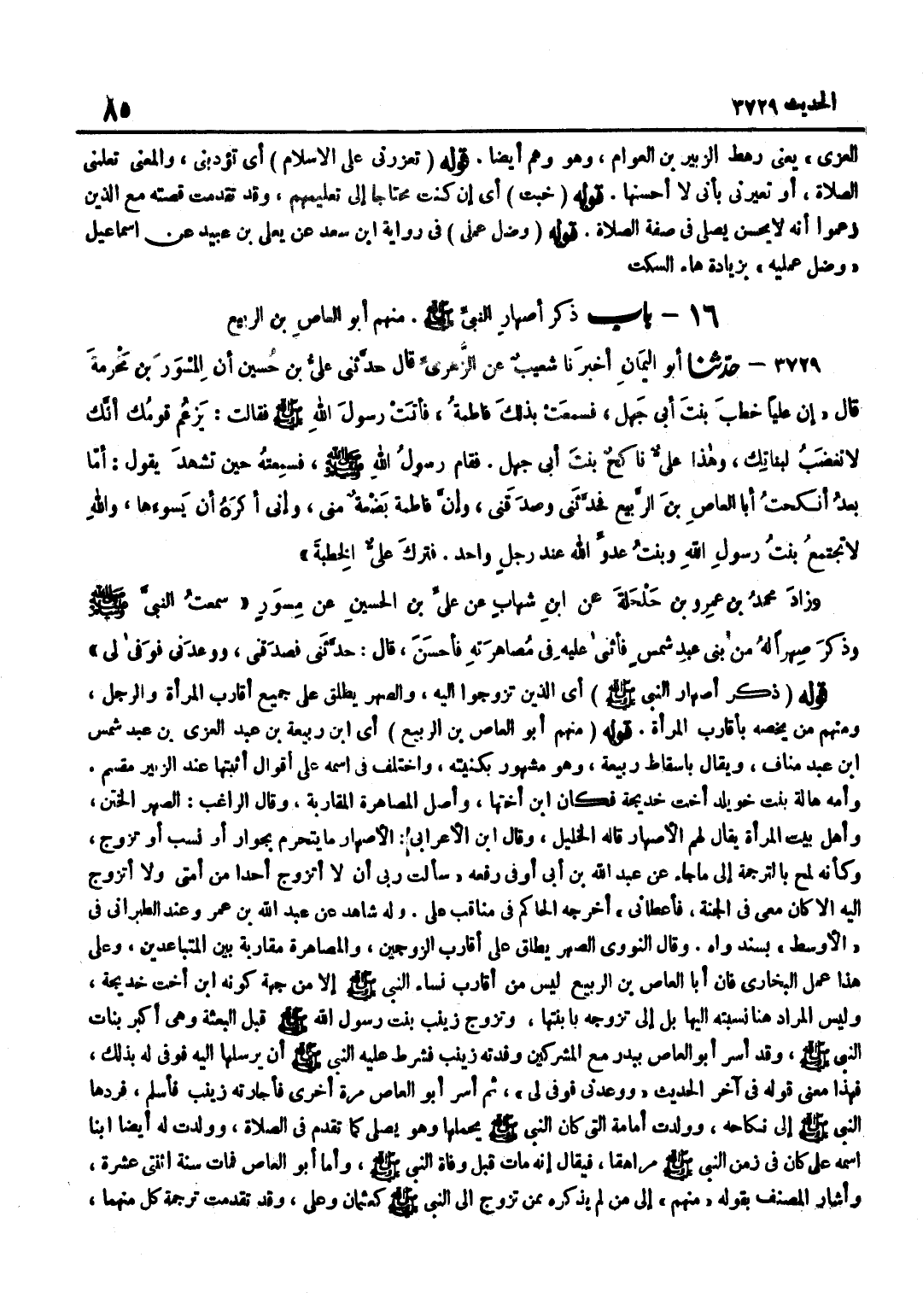 أَيِ الَّذِينَ تَزَوَّجُوا إِلَيْهِ وَالصِّهْرُ يُطْلَقُ عَلَى جَمِيعِ أَقَارِبِ الْمَرْأَةِ وَالرَّجُلِ وَمِنْهُمْ مَنْ يَخُصُّهُ بِأَقَارِبِ الْمَرْأَةِ قَوْلُهُ مِنْهُمْ أَبُو الْعَاصِ بن الرّبيع أَي بن رَبِيعَةَ بْنِ عَبْدِ الْعُزَّى بْنِ عَبْدِ شَمْسِ بْنِ عَبْدِ مَنَافٍ وَيُقَالُ بِإِسْقَاطِ رَبِيعَةَ وَهُوَ مَشْهُورٌ بِكُنْيَتِهِ وَاخْتُلِفَ فِي اسْمِهِ عَلَى أَقْوَالٍ أَثْبَتُهَا عِنْدَ الزُّبَيْرِ مِقْسَمٌ وَأُمُّهُ هَالَةُ بِنْتُ خويلد أُخْت خَدِيجَة فَكَانَ بن أُخْتِهَا وَأَصْلُ الْمُصَاهَرَةِ الْمُقَارَبَةُ وَقَالَ الرَّاغِبُ الصِّهْرُ الْخَتَنُ وَأَهْلُ بَيْتِ الْمَرْأَةِ يُقَالُ لَهُمْ الْأَصْهَارُ قَالَه الْخَلِيل وَقَالَ بن الْأَعْرَابِيِّ الْأَصْهَارُ مَا يُتَحَرَّمُ بِجِوَارٍ أَوْ نَسَبٍ أَوْ تَزَوُّجٍ وَكَأَنَّهُ لَمَّحَ بِالتَّرْجَمَةِ إِلَى مَا جَاءَ عَنْ عَبْدِ اللَّهِ بْنِ أَبِي أَوْفَى رَفَعَهُ سَأَلْتُ رَبِّي أَنْ لَا أَتَزَوَّجَ أَحَدًا مِنْ أُمَّتِي وَلَا أَتَزَوَّجَ إِلَيْهِ إِلَّا كَانَ مَعِي فِي الْجَنَّةِ فَأَعْطَانِي أَخْرَجَهُ الْحَاكِمُ فِي مَنَاقِبِ عَلِيٍّ وَلَهُ شَاهِدٌ عَنْ عَبْدِ اللَّهِ بْنِ عُمَرَ وَعِنْدَ الطَّبَرَانِيِّ فِي الْأَوْسَطِ بِسَنَدٍ وَاهٍ وَقَالَ النَّوَوِيُّ الصِّهْرُ يُطْلَقُ عَلَى أَقَارِبِ الزَّوْجَيْنِ وَالْمُصَاهَرَةُ مُقَارَبَةٌ بَيْنَ الْمُتَبَاعِدَيْنِ وَعَلَى هَذَا عَمَلَ الْبُخَارِيُّ فَإِنَّ أَبَا الْعَاصِ بْنَ الرَّبِيعِ لَيْسَ مِنْ أَقَارِبِ نِسَاءِ النَّبِيِّ صَلَّى اللَّهُ عَلَيْهِ وَسَلَّمَ إِلَّا مَنْ جِهَة كَونه بن أُخْتِ خَدِيجَةَ وَلَيْسَ الْمُرَادُ هُنَا نِسْبَتَهُ إِلَيْهَا بَلْ إِلَى تَزَوُّجِهِ بِابْنَتِهَا وَتَزَوَّجَ زَيْنَبُ بِنْتُ رَسُولِ اللَّهِ صَلَّى اللَّهُ عَلَيْهِ وَسَلَّمَ قَبْلَ الْبَعْثَةِ وَهِيَ أَكْبَرُ بَنَاتِ النَّبِيِّ صَلَّى اللَّهُ عَلَيْهِ وَسَلَّمَ وَقَدْ أُسِرَ أَبُو الْعَاصِ بِبَدْرٍ مَعَ الْمُشْرِكِينَ وَفَدَتْهُ زَيْنَبُ فَشَرَطَ عَلَيْهِ النَّبِيُّ صَلَّى اللَّهُ عَلَيْهِ وَسَلَّمَ أَنْ يُرْسِلَهَا إِلَيْهِ فَوَفَى لَهُ بِذَلِكَ فَهَذَا مَعْنَى قَوْلِهِ فِي آخِرِ الْحَدِيثِ وَوَعَدَنِي فَوَفَى لِي ثُمَّ أُسِرَ أَبُو الْعَاصِ مَرَّةً أُخْرَى فَأَجَارَتْهُ زَيْنَبُ فَأَسْلَمَ فَرَدَّهَا النَّبِيُّ صَلَّى اللَّهُ عَلَيْهِ وَسَلَّمَ إِلَى نِكَاحِهِ وَوَلَدَتْ أُمَامَةَ الَّتِي كَانَ النَّبِيُّ صَلَّى اللَّهُ عَلَيْهِ وَسَلَّمَ يَحْمِلُهَا وَهُوَ يُصَلِّي كَمَا تَقَدَّمَ فِي الصَّلَاةِ وَوَلَدَتْ لَهُ أَيْضًا ابْنًا اسْمُهُ عَلِيٌّ كَانَ فِي زَمَنِ النَّبِيِّ صَلَّى اللَّهُ عَلَيْهِ وَسَلَّمَ مُرَاهِقًا فَيُقَالُ إِنَّهُ مَاتَ قَبْلَ وَفَاةِ النَّبِيِّ صَلَّى اللَّهُ عَلَيْهِ وَسَلَّمَ وَأَمَّا أَبُو الْعَاصِ فَمَاتَ سَنَةَ اثْنَتَيْ عَشْرَةَ وَأَشَارَ الْمُصَنِّفُ بِقَوْلِهِ مِنْهُمْ إِلَى مَنْ لَمْ يَذْكُرْهُ مِمَّنْ تَزَوَّجَ إِلَى النَّبِيِّ صَلَّى اللَّهُ عَلَيْهِ وَسلم كعثمان وَعلي وَقد تقدّمت تَرْجَمَةُ كُلٍّ مِنْهُمَا