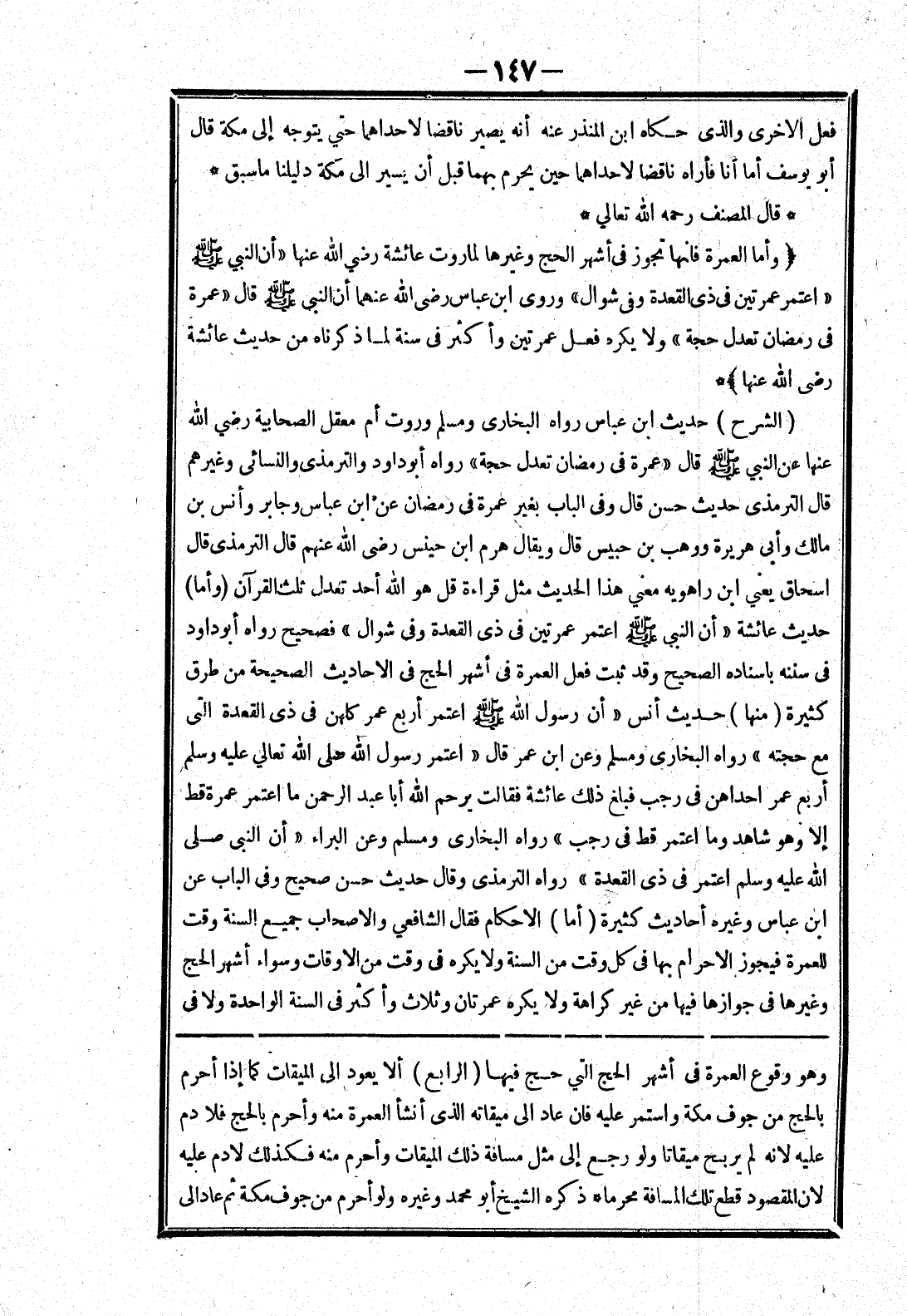 وهو وقوع العمرة في أشهر الحج التي حج فيها (الرابع) ألا يعود إلى الميقات كما إذا أحرم بالحج من جوف مكة واستمر عليه فان عاد إلى ميقاته الذى أنشأ العمرة منه وأحرم بالحج فلا دم عليه لانه لم يربح ميقاتا ولو رجع إلى مثل مسافة ذلك الميقات وأحرم منه فكذلك لا دم عليه لان المقصود قطع تلك المسافة محرما * ذكره الشيخ أبو محمد وغيره ولو أحرم من جوف مكة ثم عاد إلى
