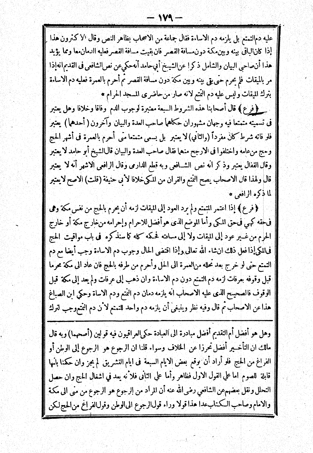 مالك ان التأخير أفضل تحرزا عن الخلاف وسواء قلنا ان الرجوع هو الرجوع إلى الوطن أو الفراغ من الحج فلو أراد أن يوقع بعض الايام السبعة في ايام الشتريق لم يجز وان حكمنا بانها قابلة للصوم اما علي القول الاول فظاهر وأما علي الثاني فلانه يعد في اشتغال الحج وان حصل التحلل ونقل بعضهم عن الشافعي رضى الله عنه أن المراد من الرجوع هو الرجوع من منى إلى مكة والامام وصاحب الكتاب عدا هذا قولا وراء قول الرجوع إلى الوطن وقول الفراغ من الحج لكن