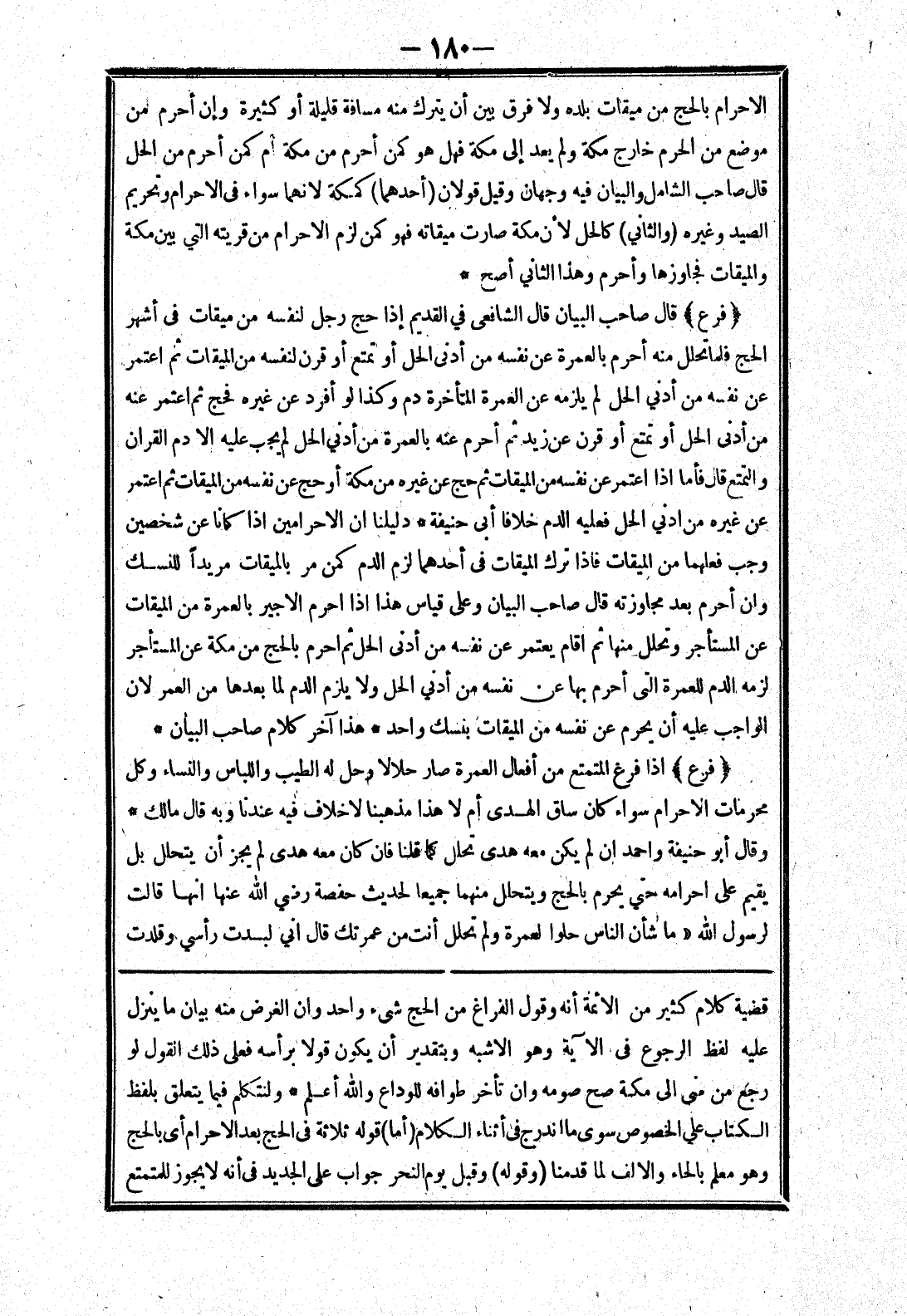 قضية كلام كثير من الائمة أنه وقول الفراغ من الحج شئ واحد وان الغرض منه بيان ما ينزل عليه لفظ الرجوع في الآية وهو الاشبه وبتقدير أن يكون قولا برأسه فعلى ذلك القول لو رجع من منى إلى مكة صح صومه وان تأخر طوافه للوداع والله أعلم * ولنتكلم فيما يتعلق بلفظ الكتاب علي الخصوص سوى ما اندرج في أثناء الكلام (أما) قوله ثلاثة في الحج بعد الاحرام أي بالحج وهو معلم بالحاء والالف لما قدمنا (وقوله) وقبل يوم النحر جواب على الجديد في أنه لا يجوز للمتمتع