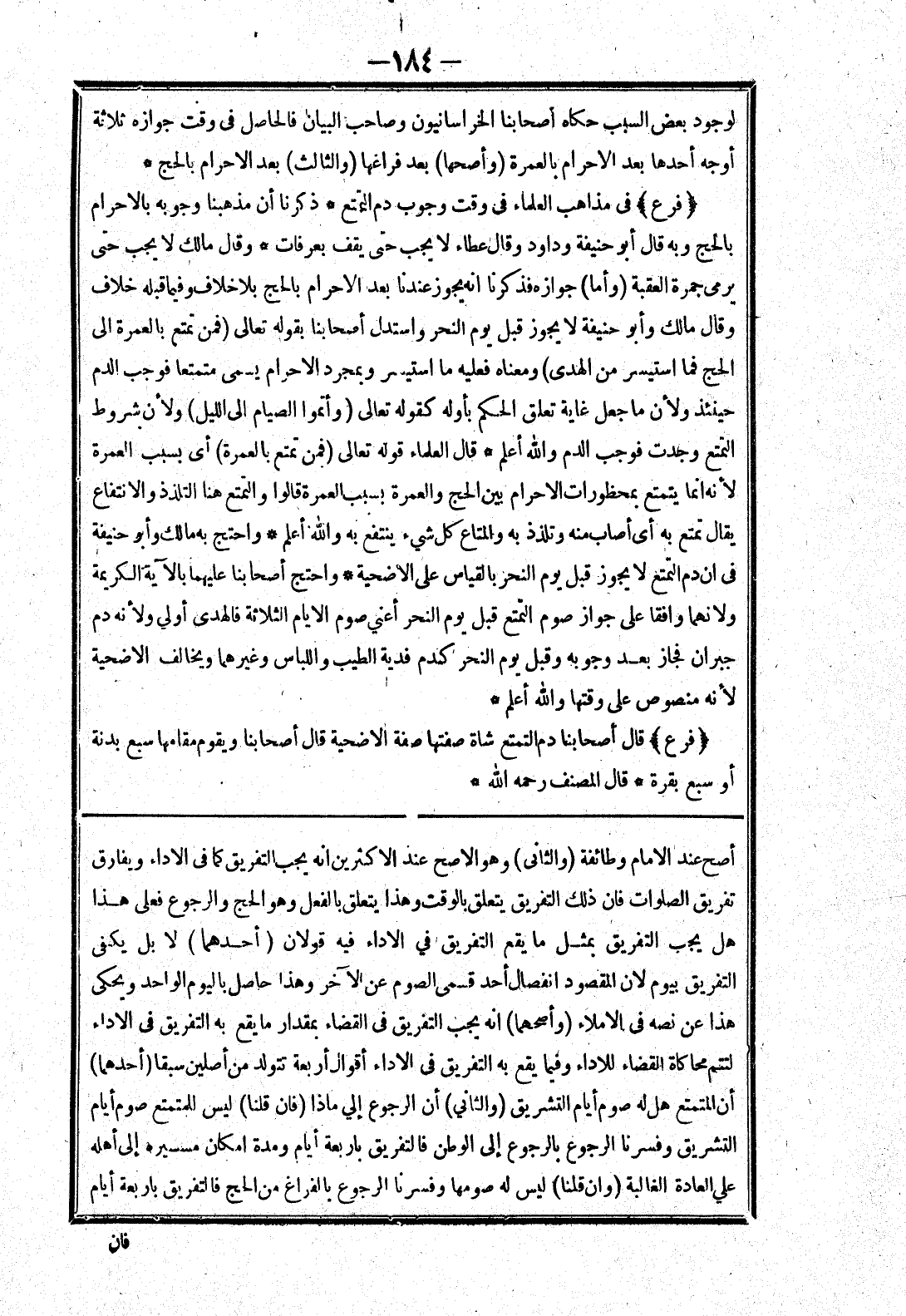 أصح عند الامام وطائفة (والثانى) وهو الاصح عند الاكثرين أنه يجب التفريق كما في الاداء ويفارق تفريق الصلوات فان ذلك التفريق يتعلق بالوقت وهذا يتعلق بالفعل وهو الحج والرجوع فعلى هذا هل يجب التفريق بمثل ما يقع التفريق في الاداء فيه قولان (أحدهما) لا بل يكفى التفريق بيوم لان المقصود انفصال أحد قسمي الصوم عن الآخر وهذا حاصل باليوم الواحد ويحكى هذا عن نصه في الاملاء (وأصحهما) انه يجب التفريق في القضاء بمقدار ما يقع به التفريق في الاداء لتتم محاكاة القضاء للاداء وفيما يقع به التفريق في الاداء أقوال أربعة تتولد من أصلين سبقا (أحدهما) أن المتمتع هل له صوم أيام التشريق (والثاني) أن الرجوع إلي ماذا (فان قلنا) ليس للمتمتع صوم أيام التشريق وفسرنا الرجوع بالرجوع إلى الوطن فالتفريق باربعة أيام ومدة امكان مسيره إلى أهله علي العادة الغالبة (وان قلنا) ليس له صومها وفسرنا الرجوع بالفراغ من الحج فالتفريق باربعة أيام