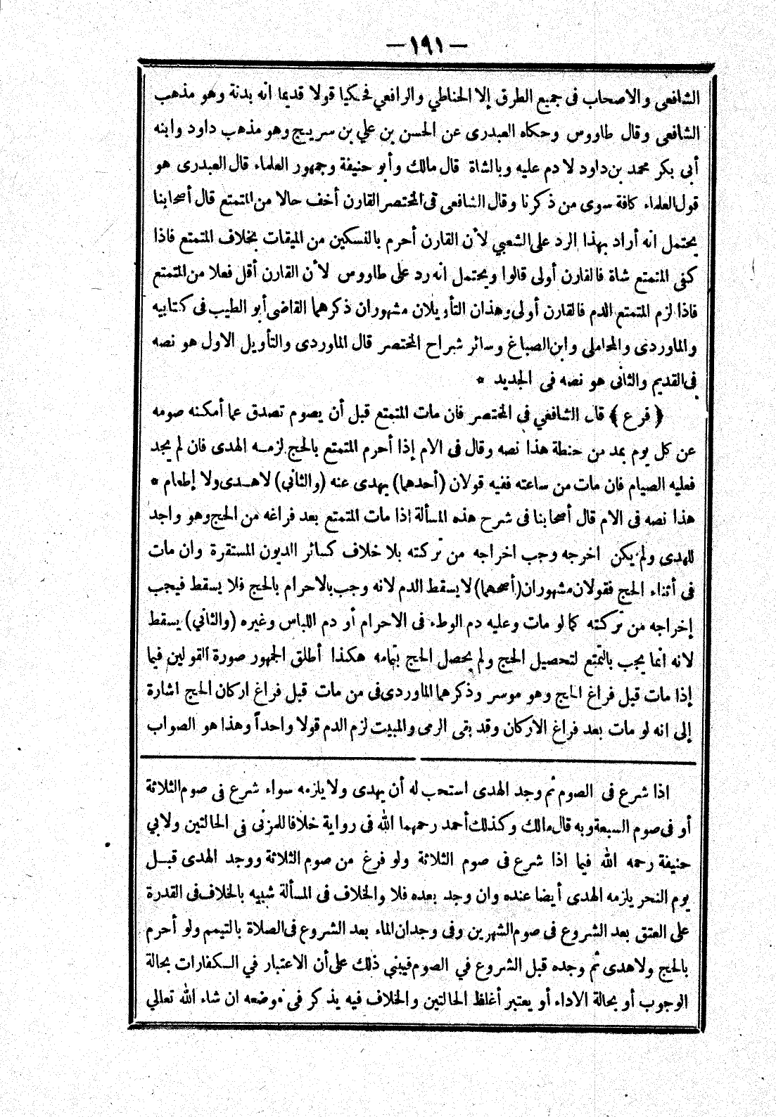 إذا شرع في الصوم ثم وجد الهدى استحب له أن يهدى ولا يلزمه سواء شرع في صوم الثلاثة أو في صوم السبعة وبه قال مالك وكذلك أحمد رحمهما الله في رواية خلافا للمزني في الحالتين ولابي حنيفة رحمه الله فيما إذا شرع في صوم الثلاثة ولو فرغ من صوم الثلاثة ووجد الهدى قبل يوم النحر يلزمه الهدى أيضا عنده وان وجد بعده فلا والخلاف في المسألة شبيه بالخلاف في القدرة على العتق بعد الشروع في صوم الشهرين وفى وجدان الماء بعد الشروع في الصلاة بالتيمم ولو أحرم