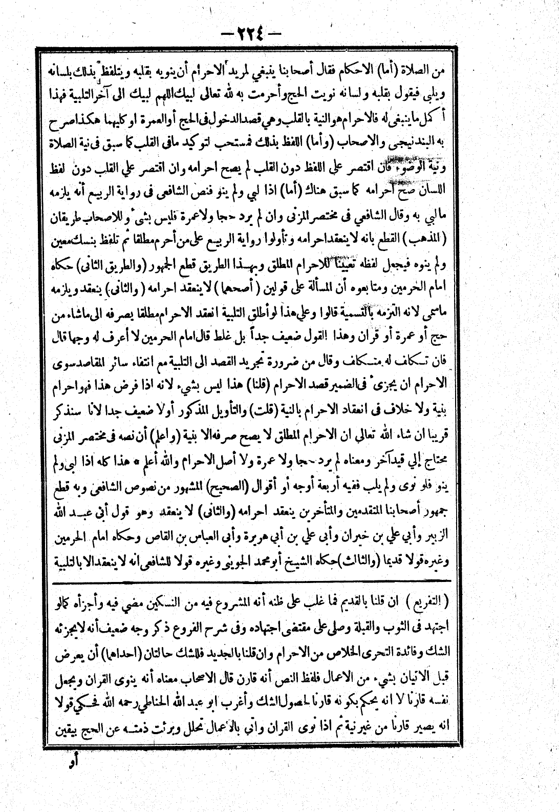 الشك وفائدة التحرى الخلاص من الاحرام وان قلنا بالجديد فللشك حالتان (احداهما) أن يعرض قبل الاتيان بشئ من الاعمال فلفظ النص أنه قارن قال الاصحاب معناه أنه ينوى القران ويجعل نفسه قارنا لا انه يحكم بكونه قارنا لحصول الشك وأغرب أبو عبد الله الحناطي رحمه الله فحكي قولا انه يصير قارنا من غير نية ثم إذا نوى القران واتى بالاعمال تحلل وبرئت ذمته عن الحج بيقين