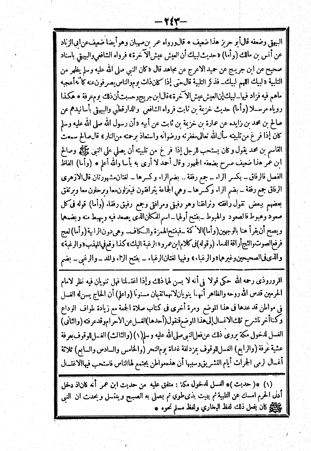 المروروذى رحمه الله حكى قولا في أنه لا يسن لهما ذلك وإذا اغتسلنا فهل تنويان فيه نظر لامام الحرمين قدس الله روحه والظاهر أنهما ينويان لانهما تقيمان مسنونا (واعلم) أن الحاج يسن له الغسل في مواطن قد عدها في هذا الموضع ومرة أخرى في كتاب صلاة الجمعة مع زيادة طواف الوداع وكنا أخرنا شرح تلك الاغسال إلى هذا الموضع فنقول (أحدها) الغسل عن الاحرام وقد عرفته (والثانى) الغسل لدخول مكة يروى ذلك عن فعل النبي صلى الله عليه وسلم (والثالث) الغسل للوقوف بعرفة عشية عرفة (والرابع) الغسل للوقوف بمزدلفة غداة يوم النحر (والخامس والسادس والسابع) ثلاثة أغسال لرمي الجمرات أيام التشريق وسببها أن هذه مواطن يجتمع لها الناس فاستحب فيها الاغتسال