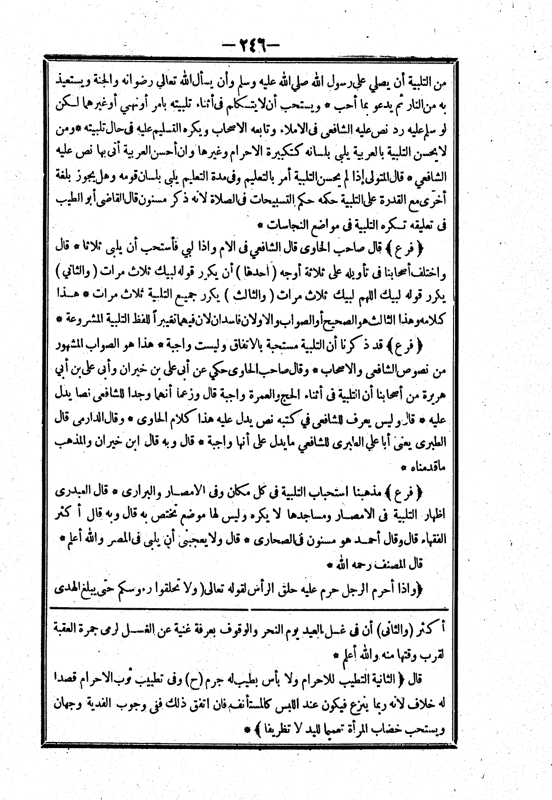 أكثر (والثانى) أن في غسل العيد يوم النحر والوقوف بعرفة غنية عن الغسل لرمي جمرة العقبة لقرب وقتها منه والله أعلم * قال (الثانية التطيب للاحرام ولا بأس بطيب له جرم (ح) وفى تطيب ثوب الاحرام قصدا له خلاف لانه ربما ينزع فيكون عند اللبس كالمستأنف فان اتفق ذلك ففى وجوب الفدية وجهان ويستحب خضاب المرأة تعميما لليد لا تظريفا) *