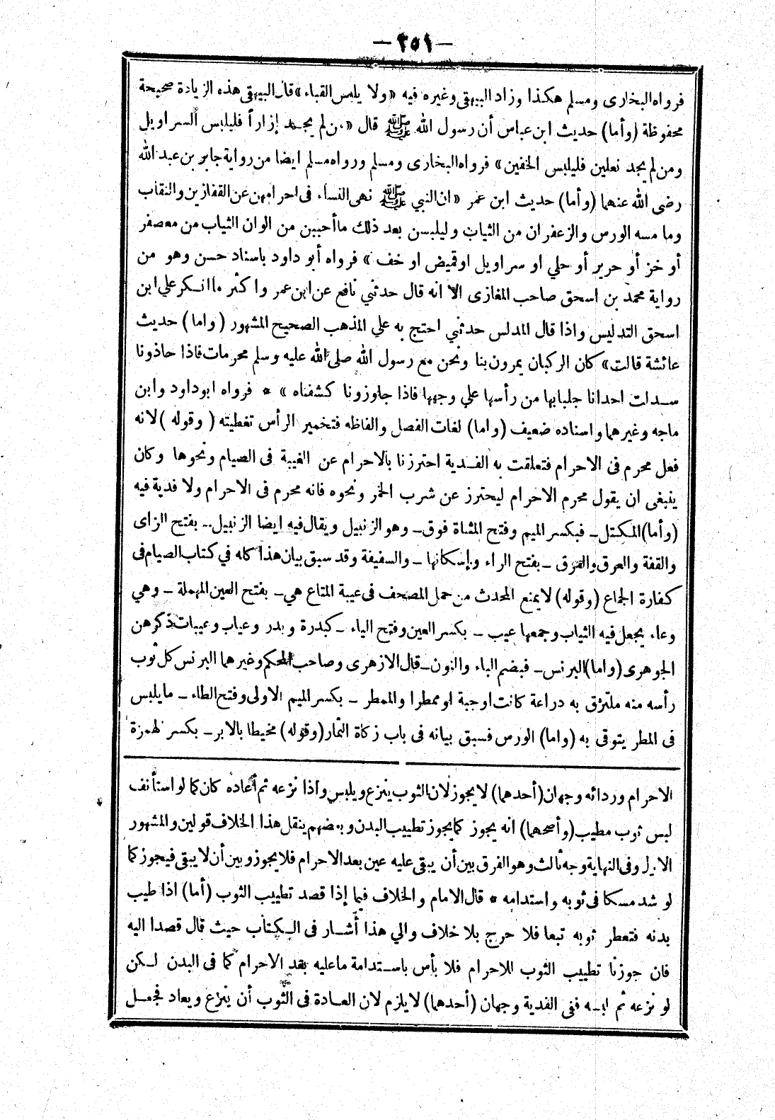 الاحرام وردائه وجهان (أحدهما) لا يجوز لان الثوب ينزع ويلبس وإذا نزعه ثم أعاده كان كما لو استأنف لبس ثوب مطيب (وأصحهما) انه يجوز كما يجوز تطييب البدن وبعضهم ينقل هذا الخلاف قولين والمشهور الاول وفى النهاية وجه ثالث وهو الفرق بين أن يبقى عليه عين بعد الاحرام فلا يجوز وبين أن لا يبقى فيجوز كما لو شد مسكا في ثوبه واستدامه * قال الامام والخلاف فيما إذا قصد تطييب الثوب (أما) إذا طيب بدنه فتعطر ثوبه تبعا فلا حرج بلا خلاف والي هذا أشار في الكتاب حيث قال قصدا إليه فان جوزنا تطييب الثوب للاحرام فلا بأس باستدامة ما عليه بعد الاحرام كما في البدن لكن لو نزعه ثم لبسه ففى الفدية وجهان (أحدهما) لا يلزم لان العادة في الثوب أن ينزع ويعاد فجعل