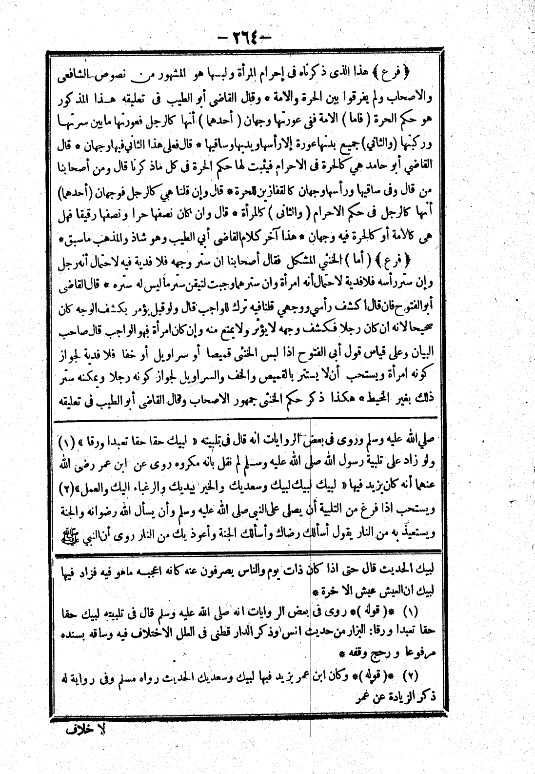 صلي الله عليه وسلم وروى في بعض الروايات انه قال في تلبيته " لبيك حقا حقا تعبدا ورقا " ولو زاد على تلبية رسول الله صلى الله عليه وسلم لم نقل بانه مكروه روى عن ابن عمر رضى الله عنهما أنه كان يزيد فيها " لبيك لبيك لبيك وسعديك والخير بيديك والرغباء اليك والعمل " ويستحب إذا فرغ من التلبية أن يصلى على النبي صلى الله عليه وسلم وأن يسأل الله رضوانه والجنة ويستعيذ به من النار يقول أسألك رضاك وأسألك الجنة وأعوذ بك من النار روى أن النبي صلى الله عليه وسلم