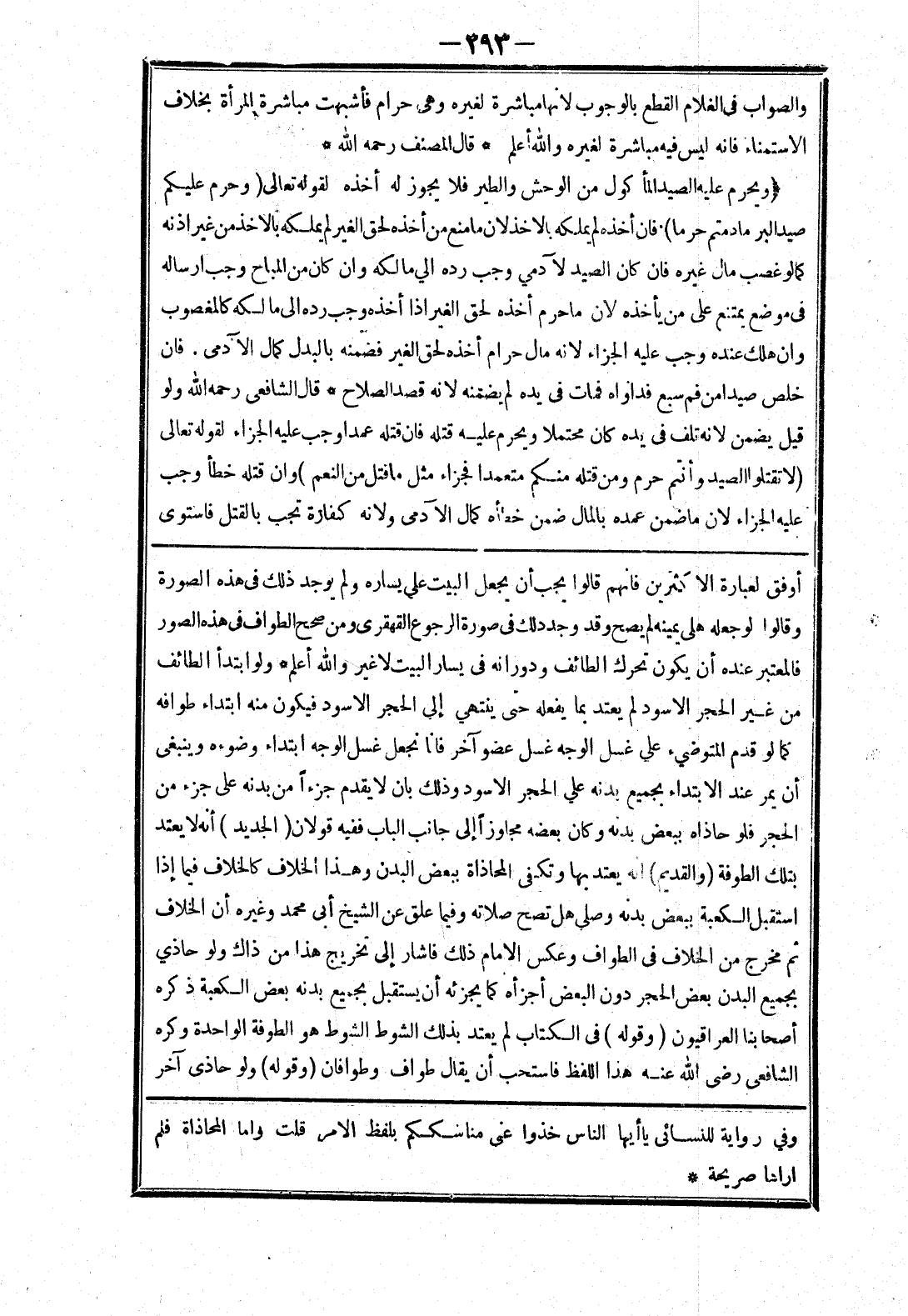 أوفق لعبارة الاكثرين فانهم قالوا يجب أن يجعل البيت علي يساره ولم يوجد ذلك في هذا الصورة وقالوا لو جعله هلى يمينه لم يصح وقد وجد ذلك في صورة الرجوع القهقرى ومن صحح الطواف في هذه الصور فالمعتبر عنده أن يكون تحرك الطائف ودورانه في يسار البيت لا غير والله أعلم * ولو ابتدأ الطائف من غير الحجر الاسود لم يعتد بما فعله حتى ينتهي إلي الحجر الاسود فيكون منه ابتداء طوافه كما لو قدم المتوضئ علي غسل الوجه غسل عضو آخر فانا نجعل غسل الوجه ابتداء وضوءه وينبغى أن يمر عند الابتداء بجميع بدنه علي الحجر الاسود وذلك بان لا يقدم جزءا من بدنه على جزء من الحجر فلوا حاذاه ببعض بدنه وكان بعضه مجاوزا إلى جانب الباب ففيه قولان (الجديد) أنه لا يعتد بتلك الطوافة (والقديم) انه يعتد بها وتكفى المحاذاة ببعض البدن وهذا الخلاف كالخلاف فيما إذا استقبل الكعبة ببعض بدنه وصلى هل تصح صلاته وفيما علق عن الشيخ أبى محمد وغيره أن الخلاف ثم مخرج من الخلاف في الطواف وعكس الامام ذلك فاشار إلى تخريج هذا من ذاك ولو حاذي بجميع البدن بعض الحجر دون البعض أجزأه كما يجزئه أن يستقبل بجميع بدنه بعض الكعبة ذكره أصحابنا العراقيون (وقوله) في الكتاب لم يعتد بذلك الشوط هو الطوفة الواحدة وكره الشافعي رضى الله عنه اللفظ فاستحب أن يقال طواف وطوافان (وقوله) ولو حاذى آخر