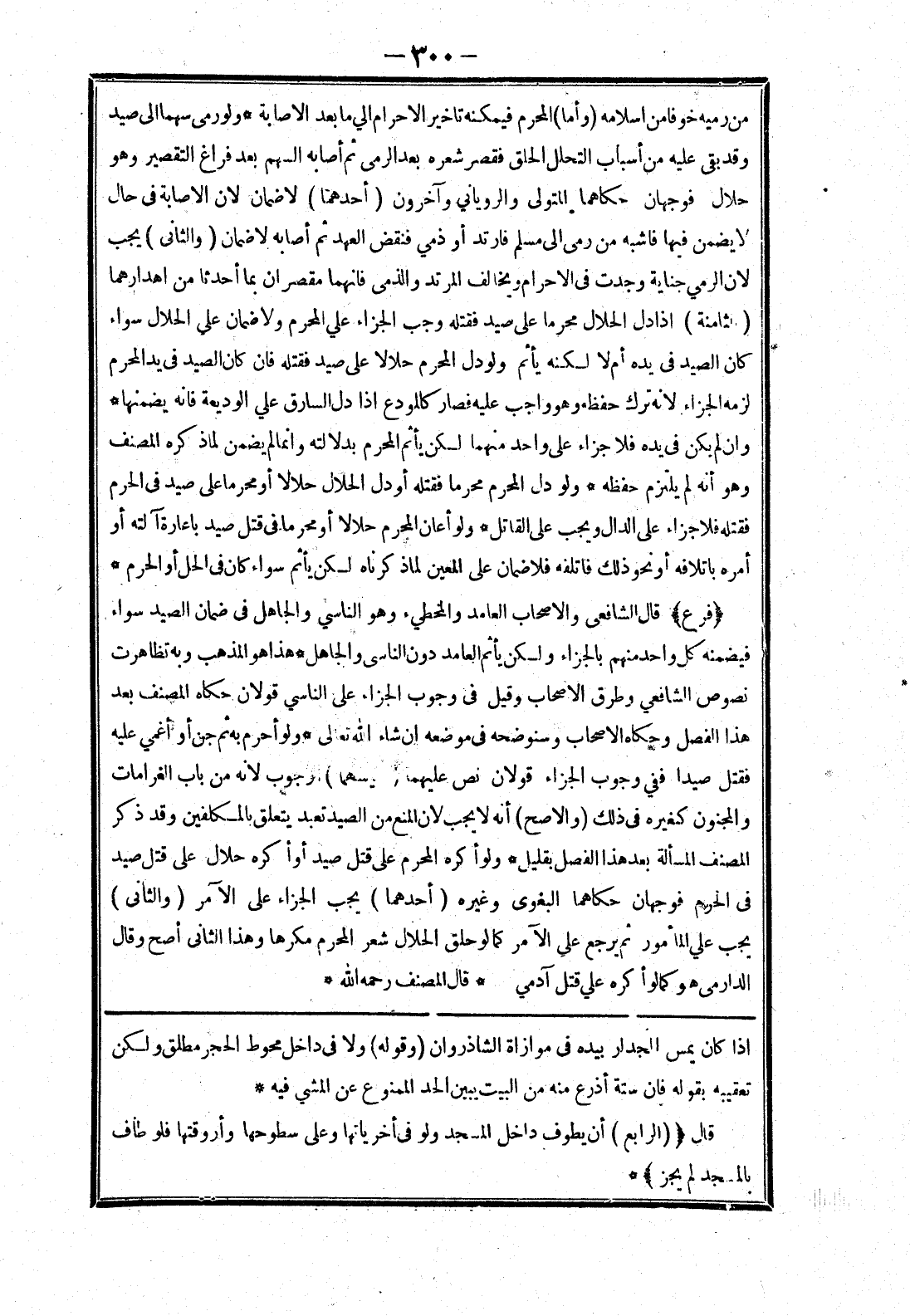 إذا كان يمس الجدار بيده في موازاة الشاذروان (وقوله) ولا في داخل محوط الحجر مطلق ولكن تعقيبه بقوله فان ستة أذرع منه من البيت يبين الحد الممنوع عن المشي فيه * قال (الرابع) أن يطوف داخل المسجد ولو في أخرياتها وعلى سطوحها وأروقتها فلو طاف بالمسجد لم يجز) *