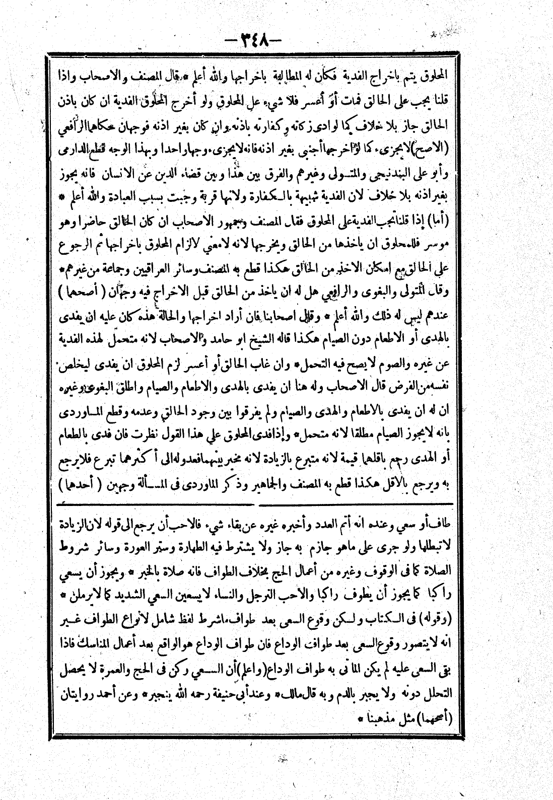 طاف أو سعي وعنده انه أتم العدد وأخبره غيره عن بقاء شئ فالاحب أن يرجع إلى قوله لان الزيادة لا تبطلها ولو جرى على ما هو جازم به جاز ولا يشترط فيه الطهارة وستر العورة وسائر شروط الصلاة كما في الوقوف وغيره من أعمال الحج بخلاف الطواف فانه صلاة بالخبر * ويجوز أن يسعي راكبا كما يجوز أن يطوف راكبا والاحب الترجل والنساء لا يسعين السعي الشديد كما لا يرملن * (وقوله) في الكتاب ولكن وقوع السعي بعد طواف ما شرط لفظ شامل لانواع الطواف غير انه لا يتصور وقوع السعي بعد طواف الوداع فان طواف الوداع هو الواقع بعد أعمال المناسك فإذا بقى السعي عليه لم يكن الماتى به طواف الوداع (واعلم) أن السعي ركن في الحج والعمرة لا يحصل التحلل دونه ولا يجبر بالدم وبه قال مالك * وعند أبى حنيفة رحمه الله ينجبر * وعن أحمد روايتان (أصحهما) مثل مذهبنا