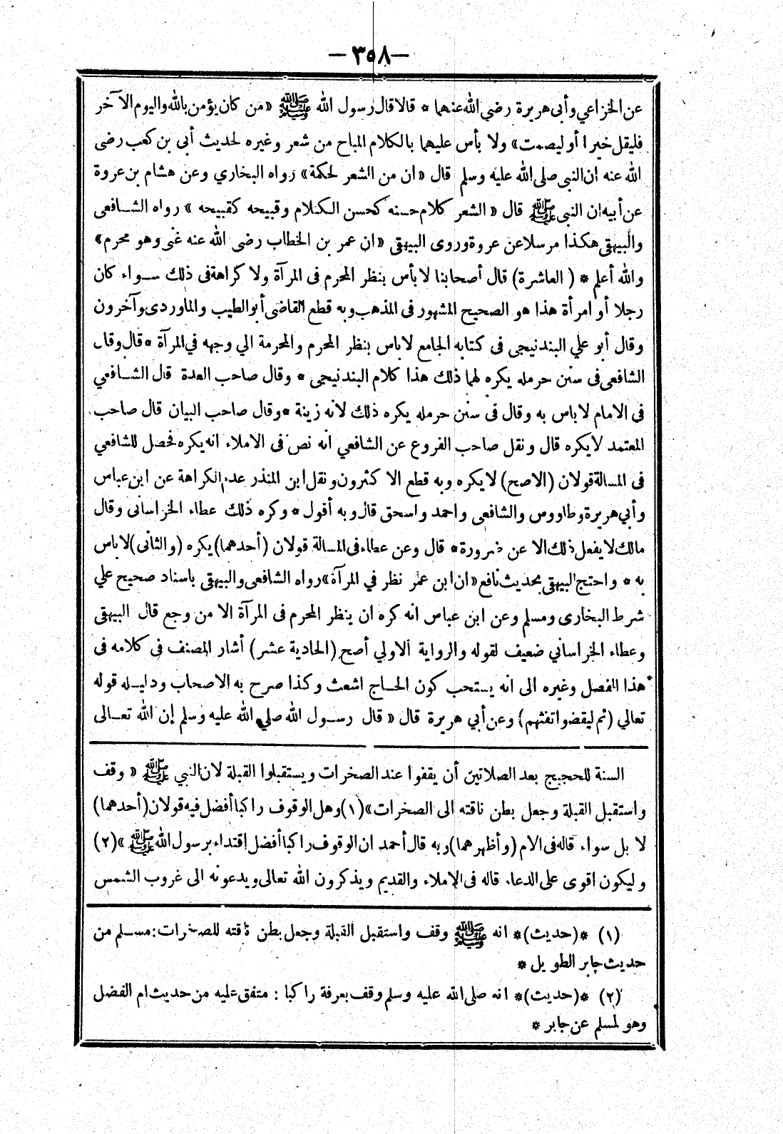 السنة للحجيج بعد الصلاتين أن يقفوا عند الصخرات ويستقبلوا القبلة لان النبي صلى الله عليه وسلم " وقف واستقبل القبلة وجعل بطن ناقته إلى الصخرات " وهل الوقوف راكبا أفضل فيه قولان (أحدهما)