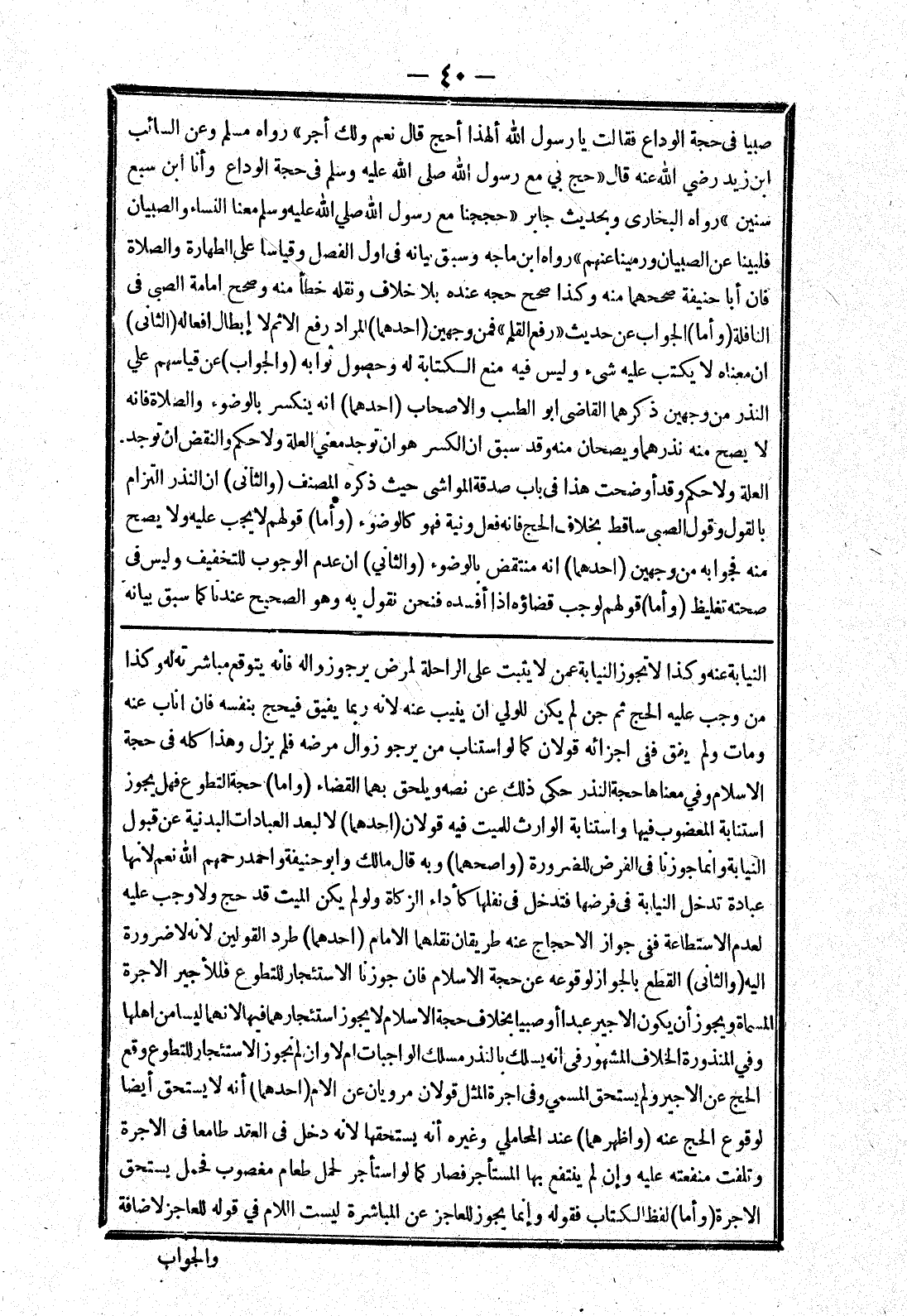 النيابة وانما جوزنا في الفرض الضرورة (واصحهما) وبه قال مالك وابو حنيفة واحمد رحمهم الله نعم لانها عبادة تدخل النيابة في فرضها فتدخل في نفلها كأداء الزكاة ولو لم يكن الميت قد حج ولاوجب عليه لعدم الاستطاعة ففى جواز الاحجاج عنه طريقان نقلهما الامام (احدهما) طرد القولين لانه لا ضرورة إليه (والثانى) القطع بالجواز لوقوعه عن حجة الاسلام فان جوزنا الاستئجار للتطوع فللاجير الاجرة المسماة ويجوز أن يكون الاجير عبدا أو صبيا بخلاف حجة الاسلام لا يحوز استئجارهما فيها لانهما ليسا من اهلها وفي المنذورة الخلاف المشهور في انه يسلك بالنذر مسلك الواجبات ام لا وان لم تجوز الاسئجار للتطوع وقع الحج عن الاجير ولم يستحق المسمي وفى اجرة المثل قولان مرويان عن الام (احدهما) أنه لا يستحق أيضا لوقوع الحج عنه (واظهرهما) عند المحاملي وغيره أنه يستحقها لانه دخل في العقد طامعا في الاجرة وتلفت منفعته عليه وإن لم ينتفع بها المستأجر فصار كما لو استأجر لحمل طعام مغصوب فحمل يستحق الاجرة (وأما) لفظ الكتاب فقوله وإنما يجوز للعاجز عن المباشرة ليست اللام في قوله للعاجز لاضافة