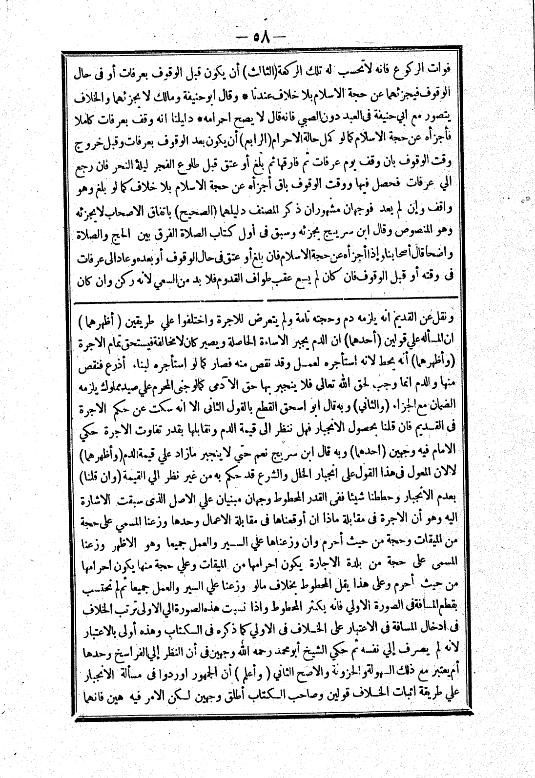 ونقل عن القديم انه يلزمه دم وحجته تامة ولم يتعرض للاجرة واختلفوا علي طريقين (أظهرهما) ان المسأله علي قولين (أحدهما) ان الدم يجبر الاساءة الحاصلة ويصير كان لا مخالفة فيستحق تمام الاجرة (وأظهرهما) أنه يحط لانه استأجره لعمل وقد نقص منه فصار كما لو استأجره لبناء أذرع فنقص منها والدم انما وجب لحق الله تعالى فلا ينجبر بها حق الآدمى كما لو جنى المحرم علي صيد مملوك يلزمه الضمان مع الجزاء (والثاني) وبه قال أبو اسحق القطع بالقول الثاني الا انه سكت عن حكم الاجرة في القديم فان قلنا بحصول الانجبار فهل ننظر إلى قيمة الدم ونقابلها بقدر تفاوت الاجرة حكي الامام فيه وجهين (احدهما) وبه قال ابن سريج نعم حتي لا ينجبر ما زاد علي قيمة الدم (وأظهرهما) لا لان المعول في هذا القول على انجبار الخلل والشرع قد حكم به من غير نظر الي القيمة (وان قلنا) بعدم الانجبار وحططنا شيئا ففى القدر المحطوط وجهان مبنيان علي الاصل الذى سبقت الاشارة إليه وهو أن الاجرة في مقابلة ماذا ان أوقعناها في مقابلة الاعمال وحدها وزعنا المسمي على حجة من الميقات وحجة من حيث أحرم وان وزعناها علي السير والعمل جميعا وهو الاظهر وزعنا المسمى على حجة من بلدة الاجارة يكون احرامها من الميقات وعلي حجة منها يكون احرامها