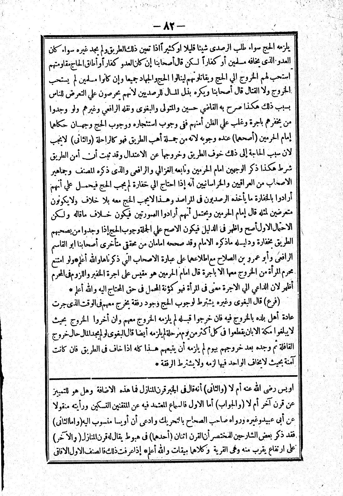 اويس رضى الله عنه أم لا (والثانى) أنه قال في الخبر قرن المنازل فما هذه الاضافة وهل هو للتمييز عن قرن آخر أم لا (والجواب) أما الاول فالسماع المعتمد فيه عن المتقنين التسكين ورأيته منقولا عن أبى عبيد وغيره ورواه صاحب الصحاح بالتحريك وادعى أن أويسا منسوب إليه (واما الثاني) فقد ذكر بعض الشارحين للمختصر أن القرن اثنان (أحدهما) في هبوط يقال له قرن المنازل (والآخر) على ارتفاع يقرب منه وهى القرية وكلاهما ميقات والله أعلم * إذا عرفت ذلك فالصنف الاول الافاقى