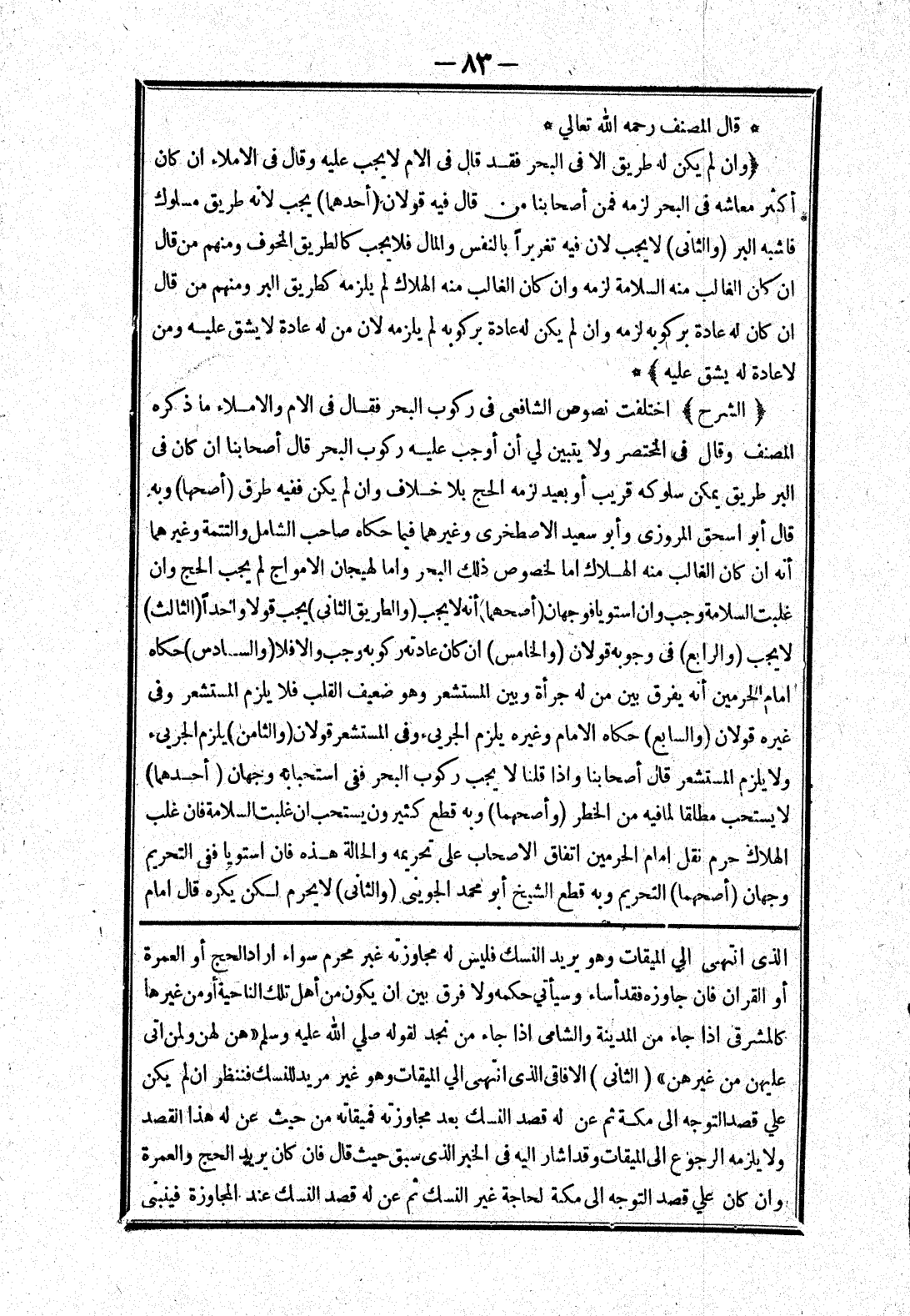 الذى انتهى الي الميقات وهو يريد النسك فليس له مجاوزته غير محرم سواء اراد الحج أو العمرة أو القران فان جاوزه فقد أساء وسيأتي حكمه ولا فرق بين ان يكون من أهل تلك الناحية أو من غيرها كالمشرقي إذا جاء من المدينة والشامي إذا جاء من نجد لقوله صلى الله عليه وسلم " هن لهن ولمن اتى عليهن من غيرهن " (الثاني) الافاقى الذى انتهى الي اليمقات وهو غير مريد للنسك فننظر ان لم يكن علي قصد التوجه إلى مكة ثم عن له قصد النسك بعد مجاوزته فميقاته من حيث عن له هذا القصد ولا يلزمه الرجوع إلى الميقات وقد اشار إليه في الخبر الذى سبق حيث قال فان كان يريد الحج والعمرة وان كان علي قصد التوجه إلى مكة لحاجة غير النسك ثم عن له قصد النسك عنة المجاوزة فينبنى