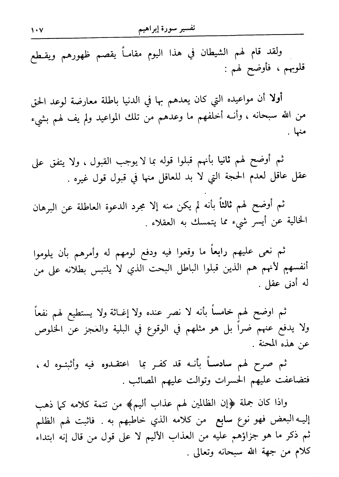 وإذا كان جملة (إن الظالمين لهم عذاب أليم) من تتمة كلامه كما ذهب إليه البعض فهو نوع سابع من كلامه الذي خاطبهم به. فأثبت لهم الظلم ثم ذكر ما هو جزاؤهم عليه من العذاب الأليم لا على قول من قال إنه ابتداء كلام من جهة الله سبحانه وتعالى.