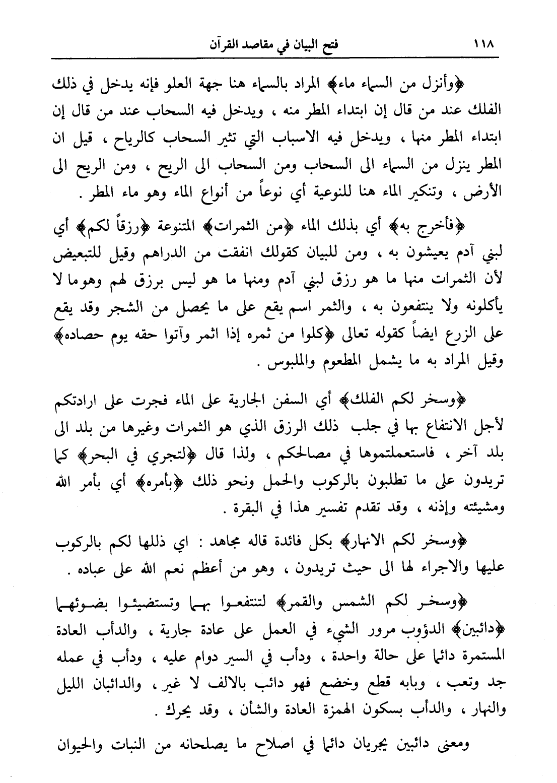 (وسخر لكم الأنهار) بكل فائدة قاله مجاهد: أي ذللها لكم بالركوب عليها والإجراء لها إلى حيث تريدون، وهو من أعظم نعم الله على عباده.