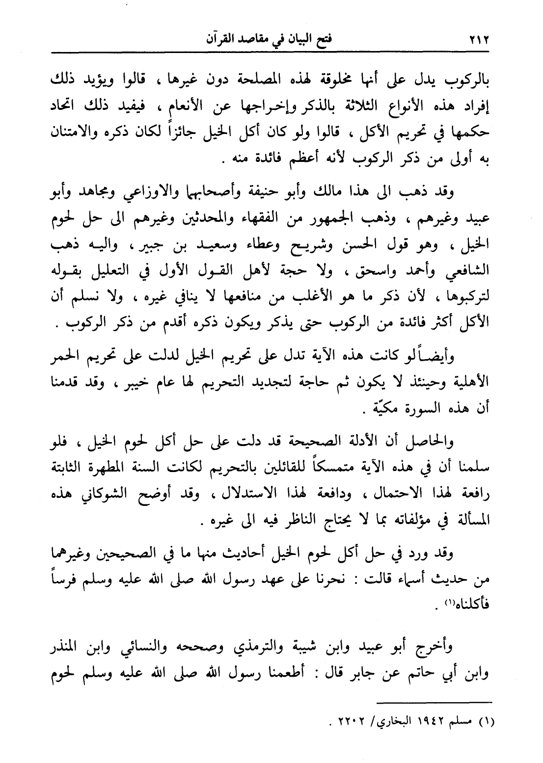 والحاصل أن الأدلة الصحيحة قد دلت على حل أكل لحوم الخيل، فلو سلمنا أن في هذه الآية متمسكاً للقائلين بالتحريم لكانت السنة المطهرة الثابتة رافعة لهذا الاحتمال، ودافعة لهذا الاستدلال، وقد أوضح الشوكاني هذه المسألة في مؤلفاته بما لا يحتاج الناظر فيه إلى غيره.