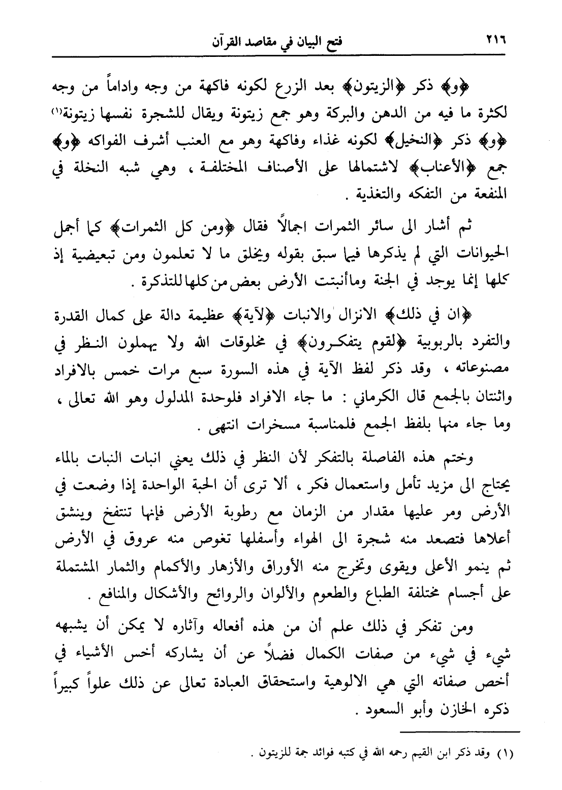 (¬1) وقد ذكر ابن القيم رحمه الله في كتبه فوائد جمة للزيتون.