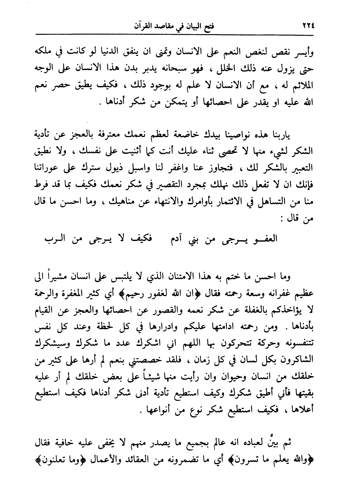 يا ربنا هذه نواصينا بيدك خاضعة لعظم نعمك معترفة بالعجز عن تأدية الشكر لشيء منها لا تحصى ثناء عليك أنت كما أثنيت على نفسك، ولا نطيق التعبير بالشكر لك، فتجاوز عنا واغفر لنا واسبل ذيول سترك على عوراتنا فإنك إن لا تفعل ذلك نهلك بمجرد التقصير في شكر نعمك فكيف بما قد فرط منا من التساهل في الائتمار بأوامرك والانتهاء عن مناهيك، وما أحسن ما قال من قال: