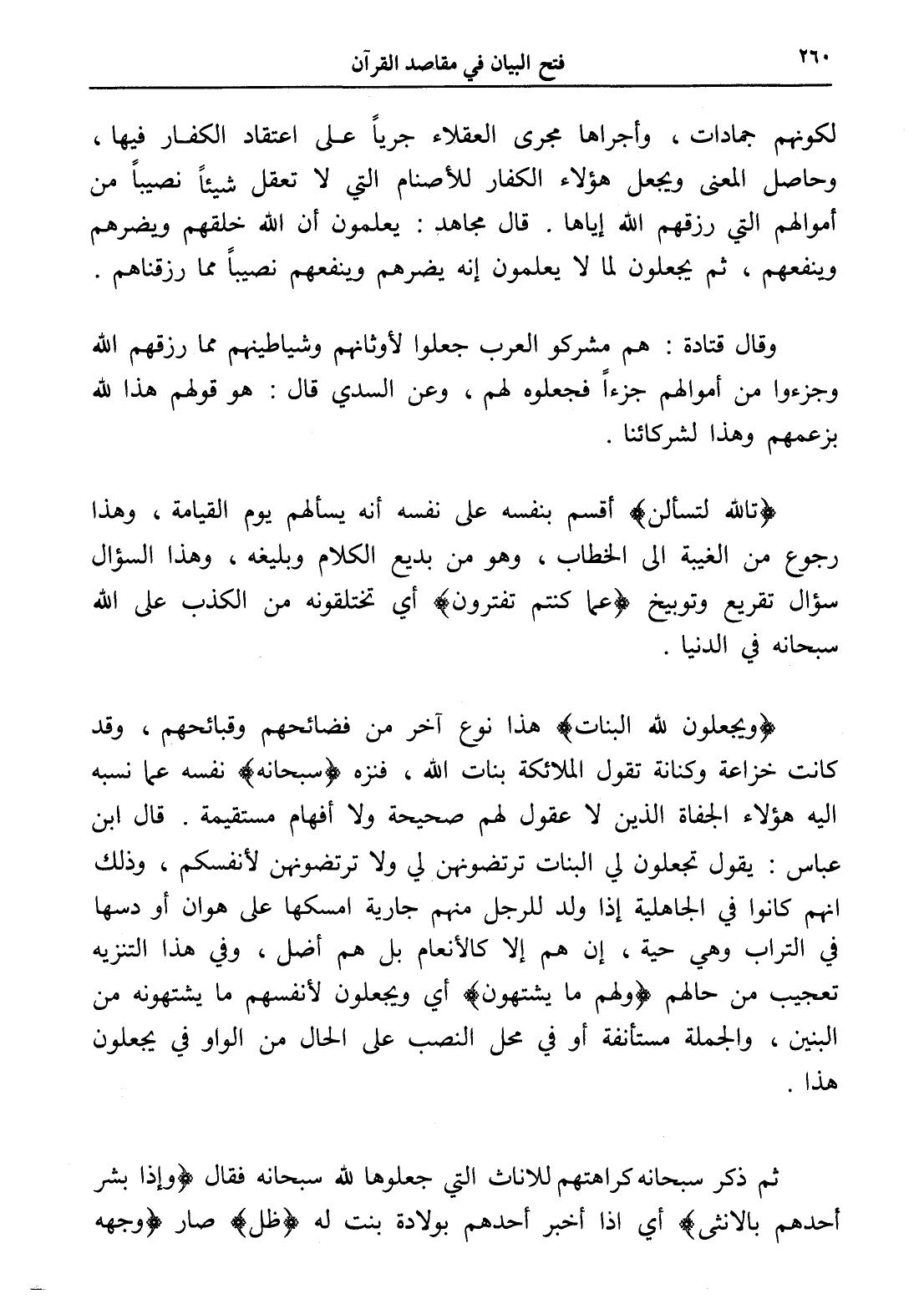 (ويجعلون لله البنات) هذا نوع آخر من فضائحهم وقبائحهم، وقد كانت خزاعة وكنانة تقول الملائكة بنات الله، فنزه (سبحانه) نفسه عما نسبه إليه هؤلاء الجفاة الذين لا عقول لهم صحيحة ولا أفهام مستقيمة. قال ابن عباس: يقول تجعلون لي البنات ترتضونهن لي ولا ترتضونهن لأنفسكم، وذلك إنهم كانوا في الجاهلية إذا ولد للرجل منهم جارية أمسكها على هوان أو دسها في التراب وهي حية، إن هم إلا كالأنعام بل هم أضل، وفي هذا التنزيه تعجيب من حالهم (ولهم ما يشتهون) أي ويجعلون لأنفسهم ما يشتهونه من البنين، والجملة مستأنفة أو في محل النصب على الحال من الواو في يجعلون هذا.